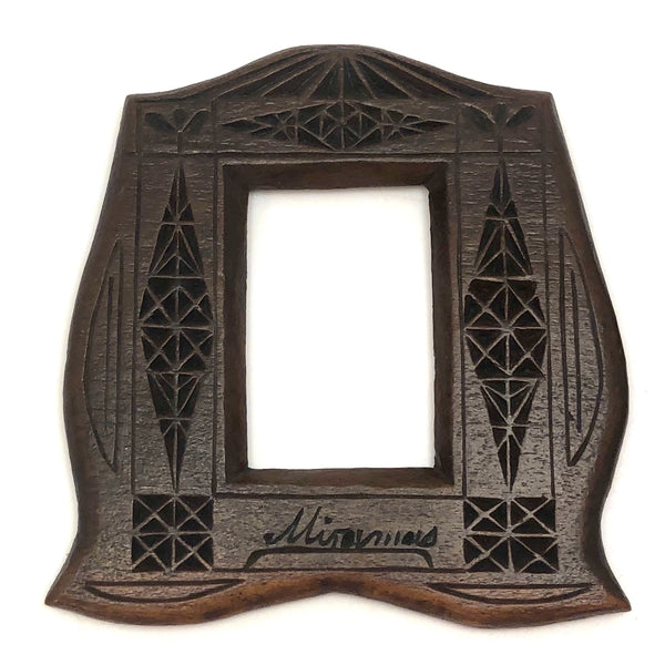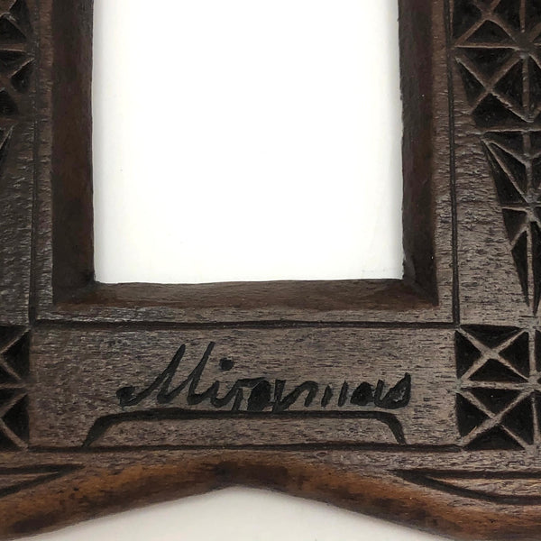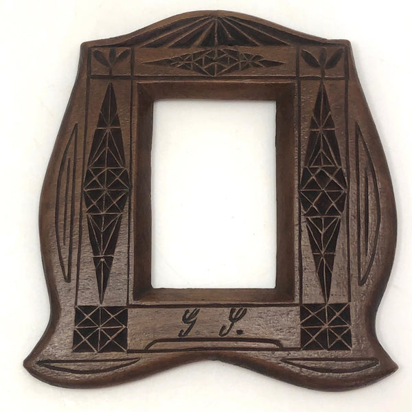 I love the idea of these as a wedding gift (individual portraits in each, but to be hung together), or perhaps for parents expecting twins! I've got a soft spot for chip carving to begin with, and think the folky combination of shapes and patterns on these is great, with the decoration at the top centers reminding one of heavenly rays of light shining down on whomever or whatever is housed in the frames.