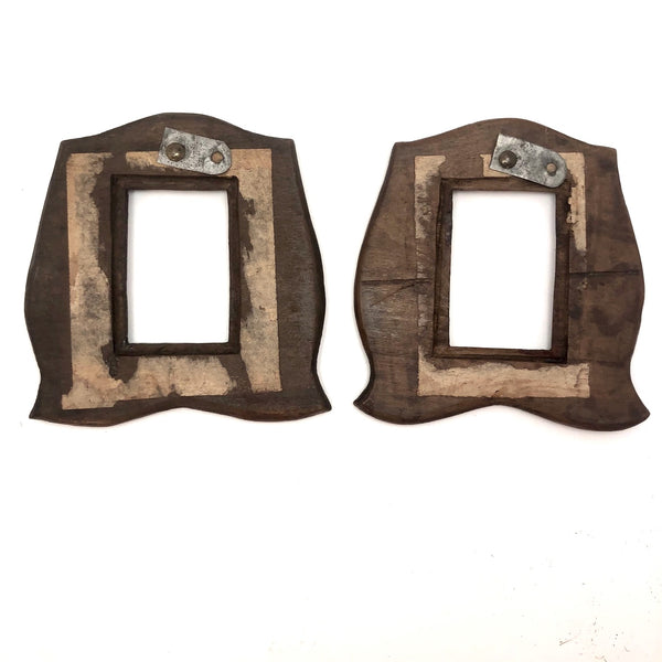 Left one, slightly larger, measures 5 1/4" t x 5 1/8" w. Right, slightly smaller, 5 1/8" t 4 7/8" w. Visible image size: 2 5/8" x 1 3/4". Excellent condition. Sold as a pair.