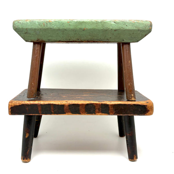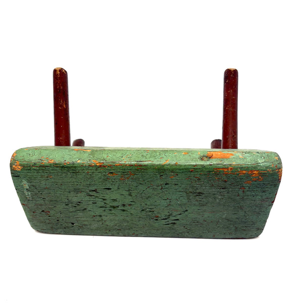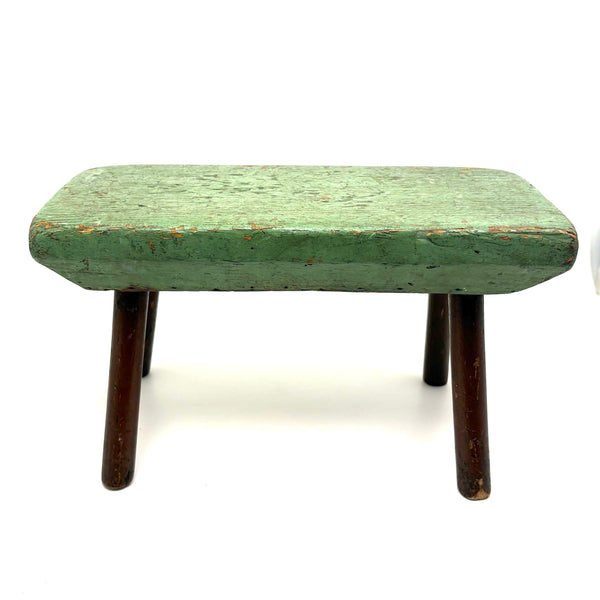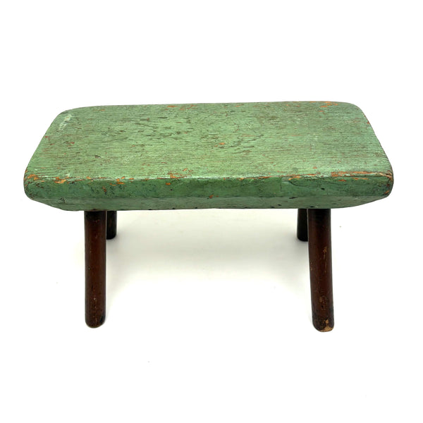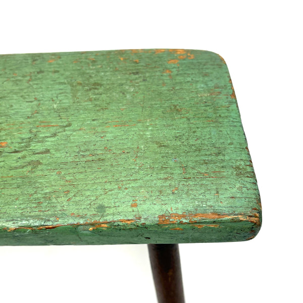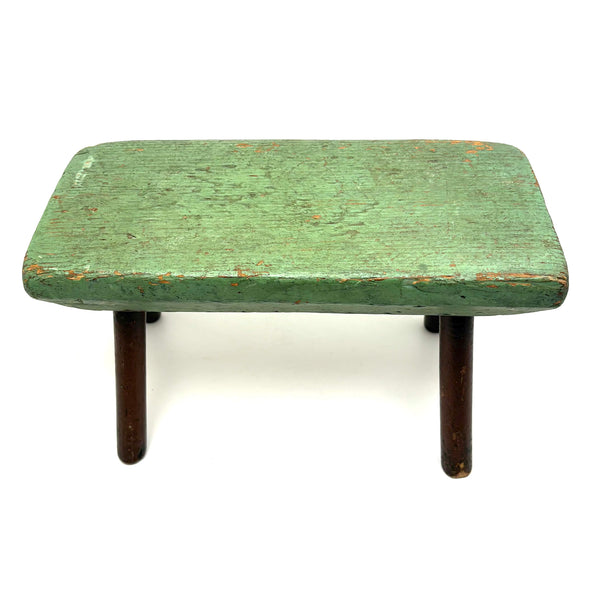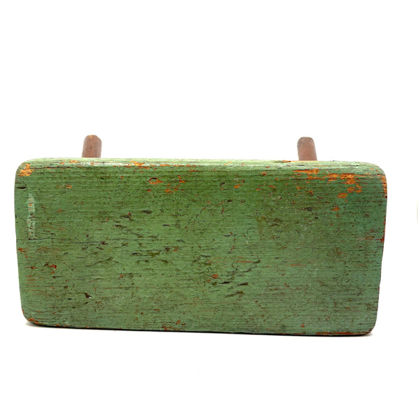 When I am out and about I swear I pick up most every stool I see (often having to remove a pile of other things that have been set atop it), and study it from every angle, 95 percent of the time returning it back to its spot and stacking whatever pile back on top of it. I had to travel to a couple hundred miles to find this one, and two others listed today, but they are really good ones. In this case it is, of course, all about that green. But with a really nice shape to it, too. Pine, and all original I believe, with a few spots on the underside where the green paint covers the brown. Sturdy and sound and a great one as a pedestal and/or for the top of the stack.