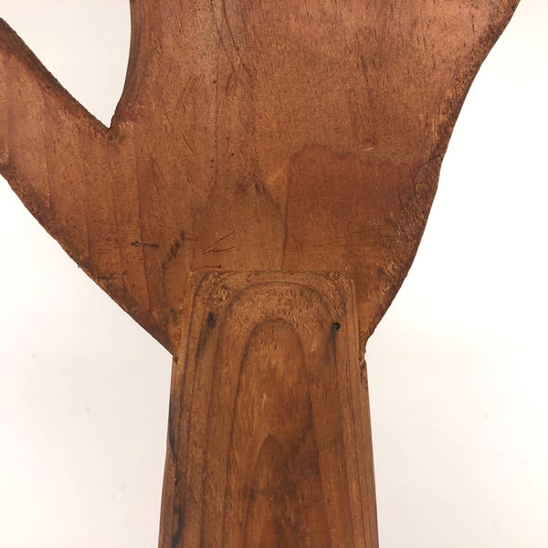 I'm guessing this was probably made as a mold, but I'm not completely sure. While fairly crudely done, I like it as a gesture of a raised hand, as if saying "I know the answer" and forever waiting to be called upon!