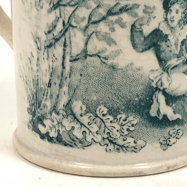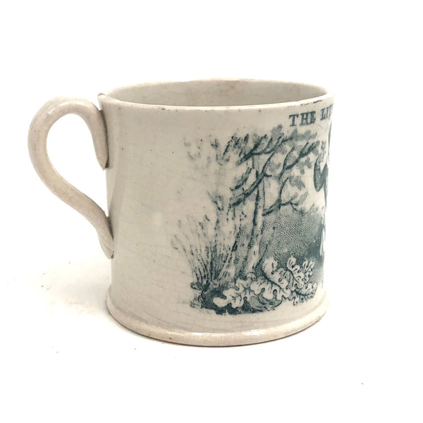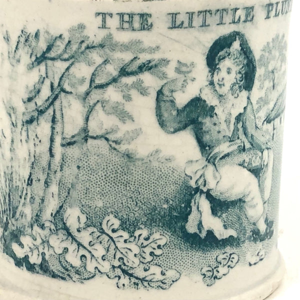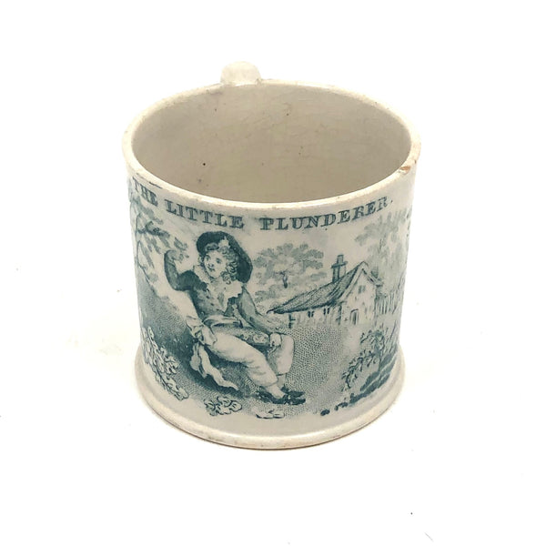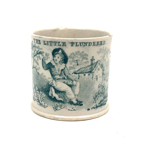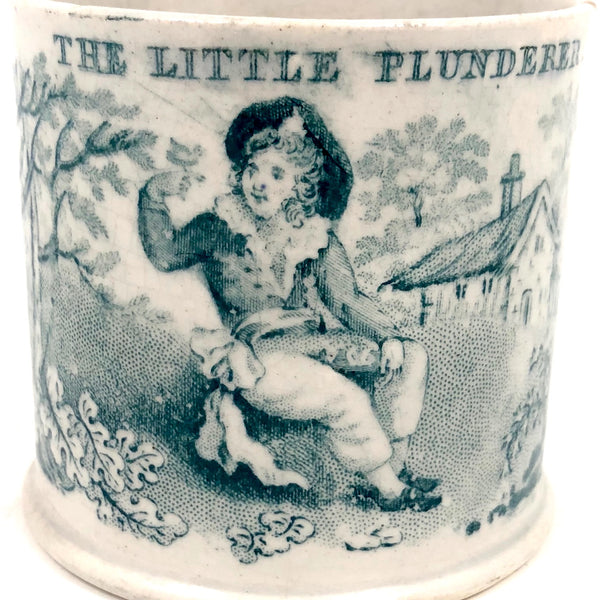 Another antique Staffordshire child's mug, because I can't get enough of these, though I'm increasingly picky about the ones I like. In this case it's the title--"the little plunderer" that drew me--because plundering seems as much of the moment as it ever was! The particular plunderer in question here, though, seems not to be this fancified boy but rather the bird perched on his finger--though it seems quite likely there's satire at play here, or scapegoating, as this little bird seems a far cry from a plundering bird of prey!