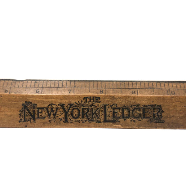 Great lettering on this later 19th c. New York Ledger advertising ruler, and a nice piece of NYC history. Plus I always love a ruler, and think they are quite a nice thing to collect, and ever handy too. The New York Ledger was a weekly paper published in Manhattan, 1855-1898. It was established by Robert E. Bonnerby, by transforming the weekly financial journal called The Merchant's Ledger that he had purchased in 1851. The date of last issue was 1898, when it was changed to The Ledger Monthly, which disappeared by 1903. With excellent advertising pitch language on reverse too..."The great medium for reaching the homes of the most intelligent and well-to-do people in every county in North America."