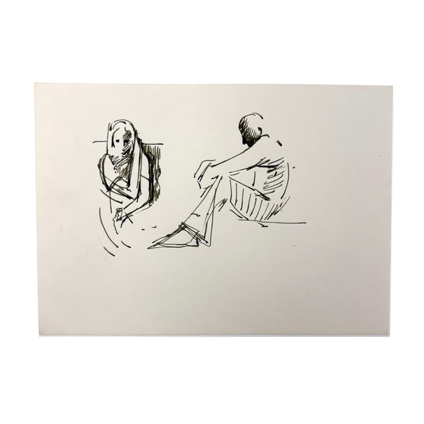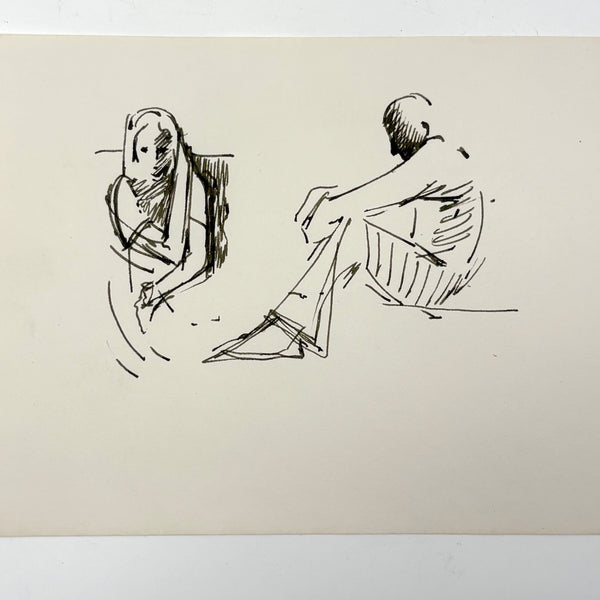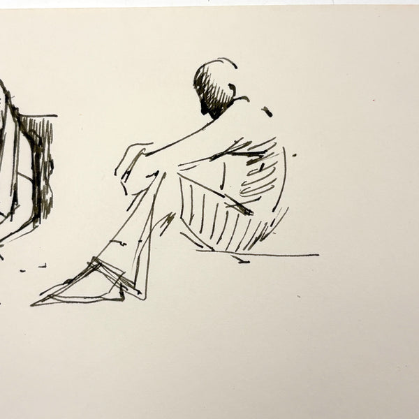 Another smallish drawing re-discovered while sorting though some old piles of paper, and another that struck me as too good to put in the flea market pile (though I must say I have a very nice pile for the flea market!:)) And, a bit like the architectural sketch also listed today, this quick one feels quite resolved, with the gestures of the two figures here feeling like embodiments/essences of larger states of being.