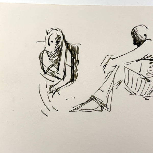 6 7/8" x 4 15/16". Black marker on crisp white paper, pulled from a c. 1970s sketchbook. Excellent condition.