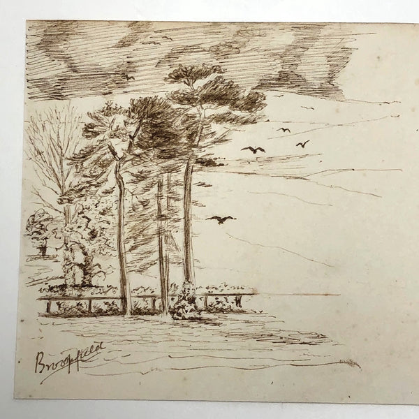 Two studies of trees, from a portfolio of c. 1880s sketches by a British artist of whom only the initials E.G.H are known; the "Broomfield" scrawled at the bottom of each sketch I believe refers to the location of the drawing--a hamlet in Wiltshire, England. I quite like the combination of the two studies on one page, each transporting in a different direction, while at the same time reminding me of the format of a stereoscopic card, as it the two might merge into one!
