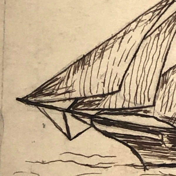Sold as a pair. It appears that a second ship drawing was likely intended for the smaller of the two, with two pencil drawn frames. Both are in very good shape, clear and crisp.