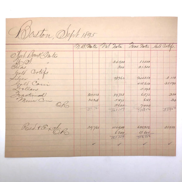 I have a hard time resisting old ship drawings, but what especially sold me on these is that they were done on old used ledger paper, with the header on one of them being Boston, Sept. 1895 (and including what appear to be fairly substantial assets.) As Boston had been quite a hub of clipper ship design and building, I'd like to think whoever drew these had a personal connection, or at least observed these beauties on the sea, first hand. I don't know, but think they're lovely regardless.