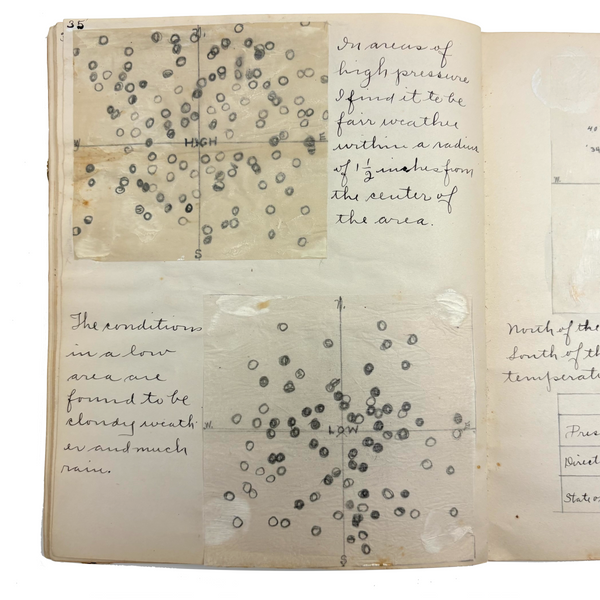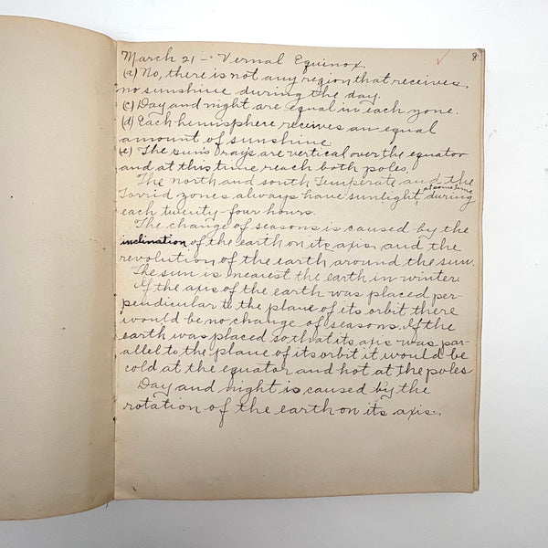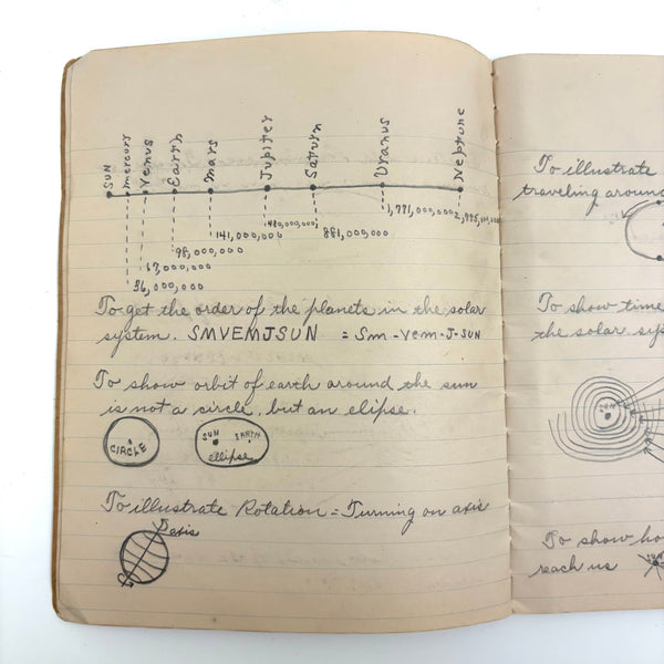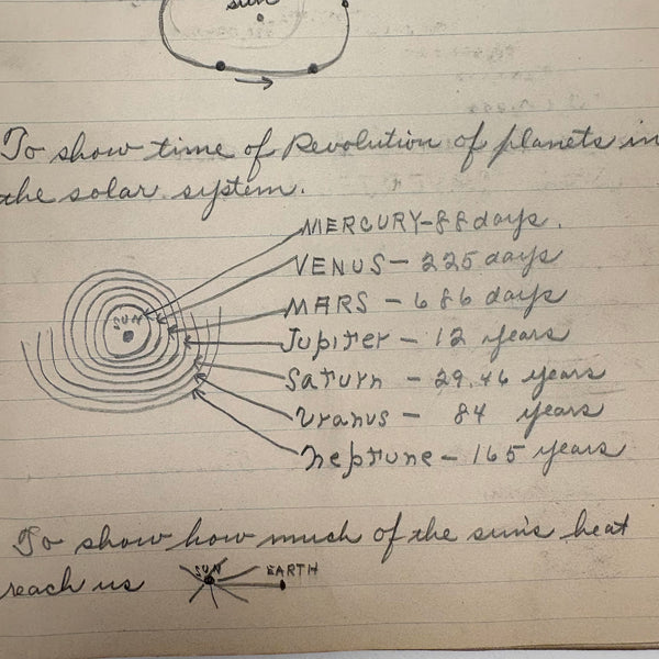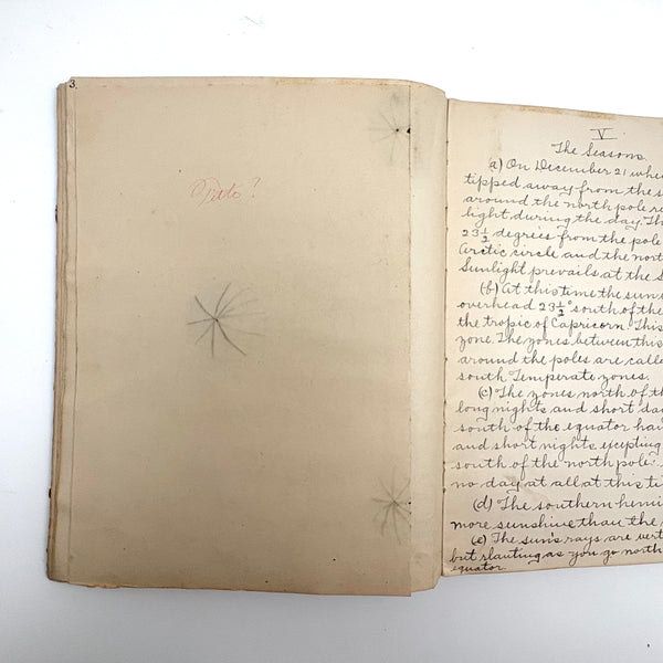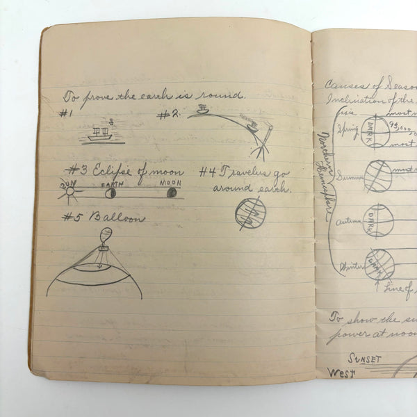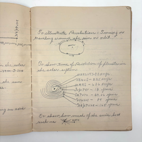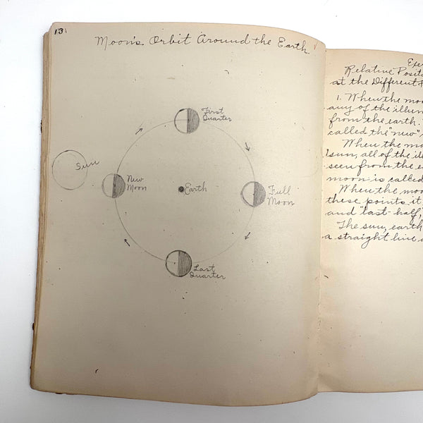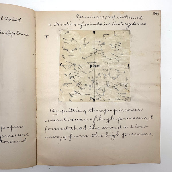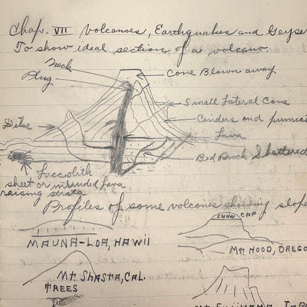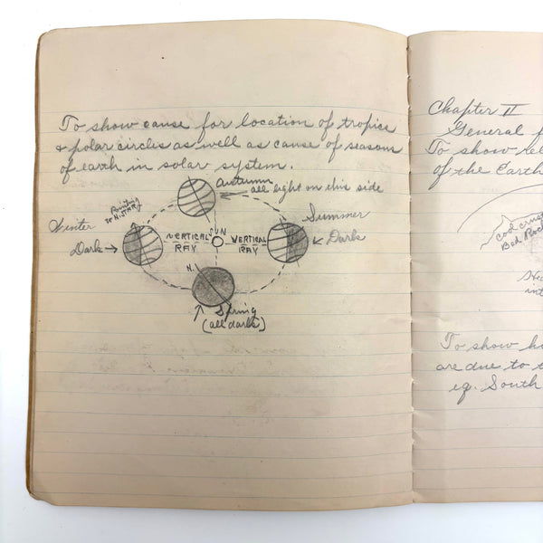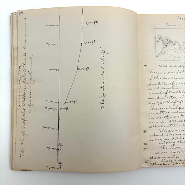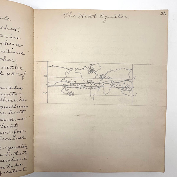 I purchased these two separately, but with the marble covered one filled just a portion of the way through (lots of blank pages to put to use now should one wish), I thought they'd be good to offer as a pair. Both are notebooks for Physiography classes--covering processes and patterns in the natural environment such as the atmosphere, hydrosphere, biosphere, and geosphere. (Facts!) Of course I'm always a sucker for the hand-drawn diagrams in notebooks like this, with lots of them here, as pictured. Photos give a good sense.