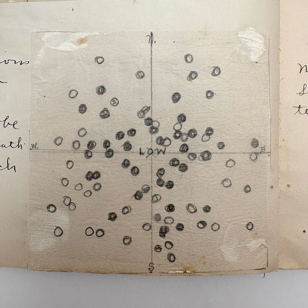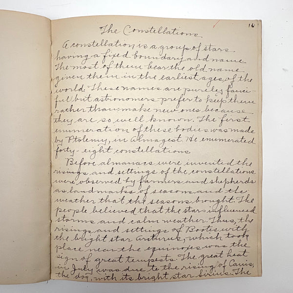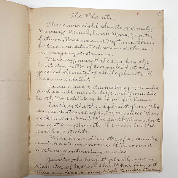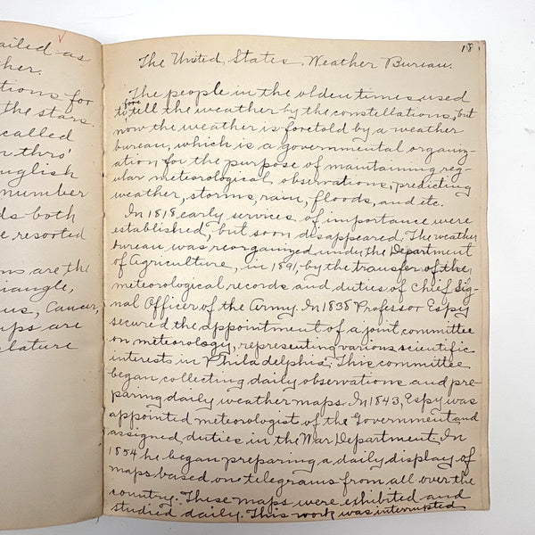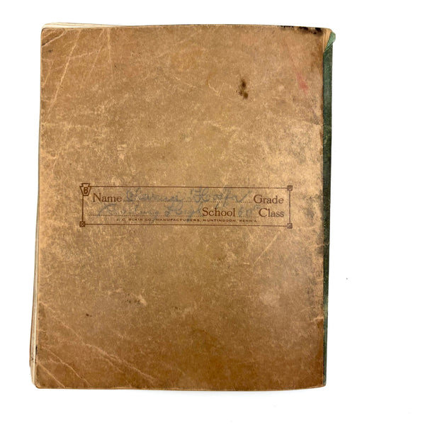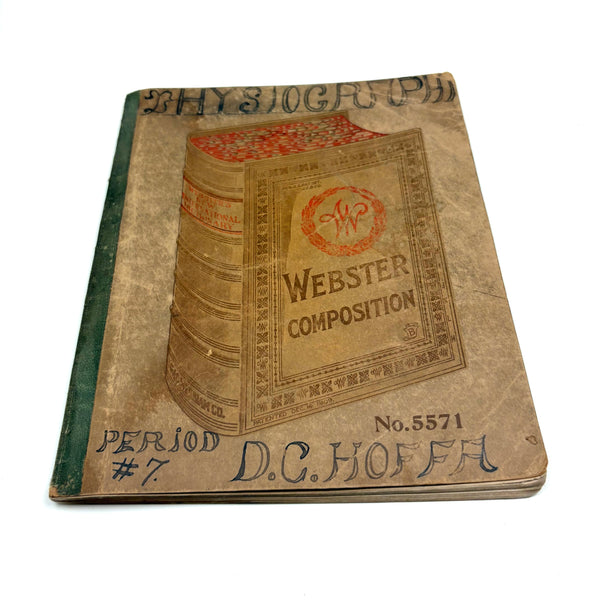 Marble covered notebook 8 1/4" x 6 3/4", 42 pages numbered by hand--most just filled on one side. Then another 50 or so unused leaves. Webster's notebook: 8 5/16" x 6 7/8", 25 leaves filled mostly front and back, then 8 unused. Photos show a couple pages from each first, then document one notebook then the other. All in very good condition.