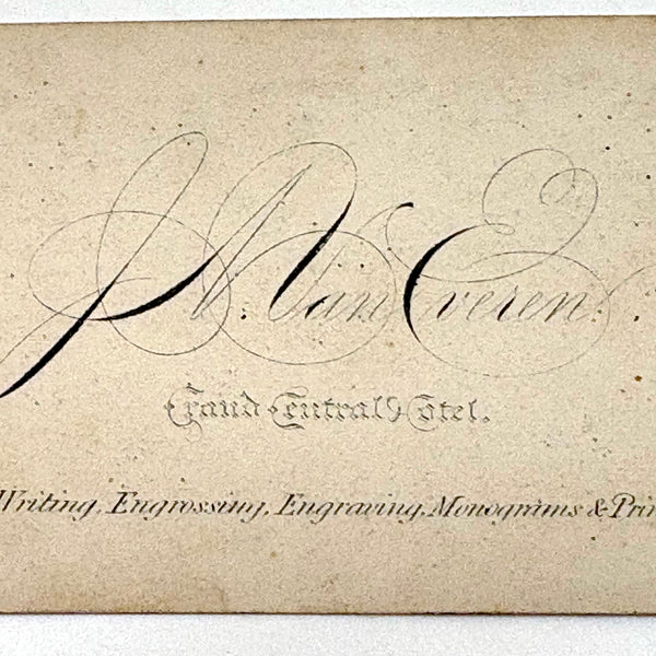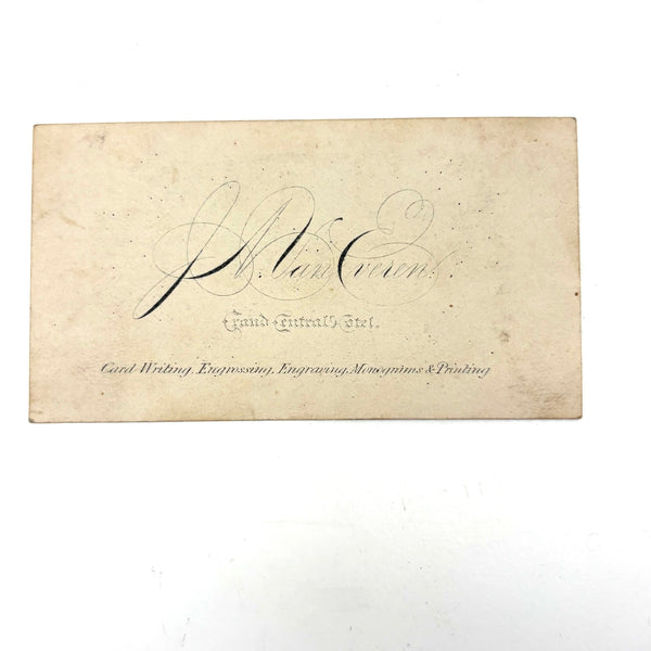 This is the first example of anamorphic text I've had, though I will definitely be on the hunt for others. By viewing the text from an angle (holding it almost flat on its side), all those abstract lines form words. Here, it reads "Van Everens Visiting Cards" from one direction, and then "Central" from the short side, and then "Grand" and "Hotel" from the corner angles. (I did my best to photograph, but it's a bit easier in hand.) Analog magic, pretty cool. And I've been thinking of late about the (increasing lost) art of business card design after a recent instagram post by @illgiveyousomethingtodream about--which has made me want to start collecting interesting examples.