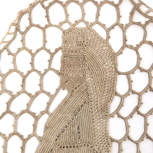 Very Fine, Unusual Antique Needle Lace Medallion of Native American Figure