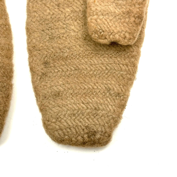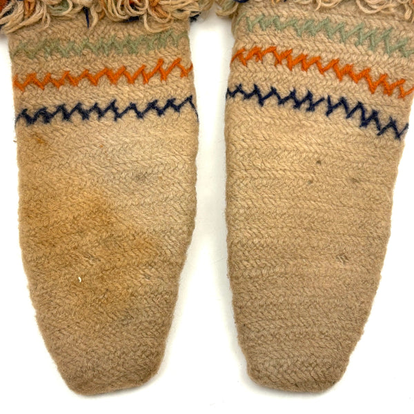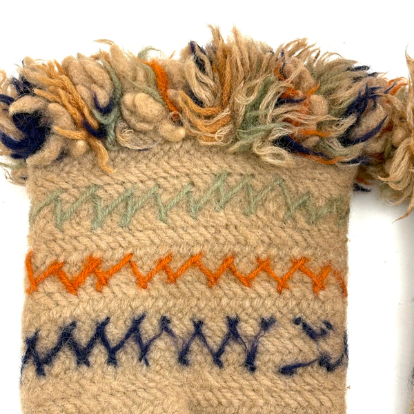 I just fell in love with these, knit for a child (or an adult with very small hands) quite a long time ago. There is a similar pair in the collection of the Nordiska Museum in Stockholm (a marvelous place!) that tells me they are likely Swedish; I have found an image of some Icelandic mittens several hundred years old they are kin to as well. A few stitches the the zig zag embroidery lost on the thumb side (which makes sense) and a stain here or there, but I find that all to the good; someone saw some cold winter days in these! Very densely knit of heavy wool, with the embroidery in wool yarn too.