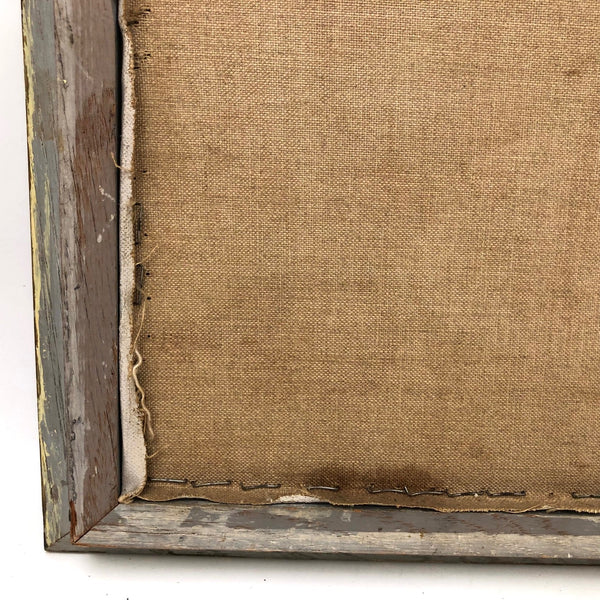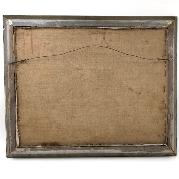 16 5/8" x 13 1/2" x 1". Oil on canvas, good condition, with the canvas stapled right to the edges of the frame--stapled before it was painted I believe, as there a few tiny unpainted spots along the right edge, as documented. Signed J. Colville, c. mid 20th c.