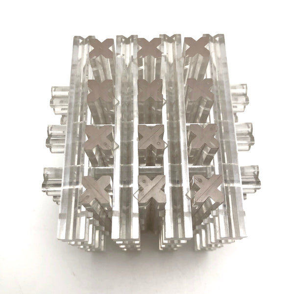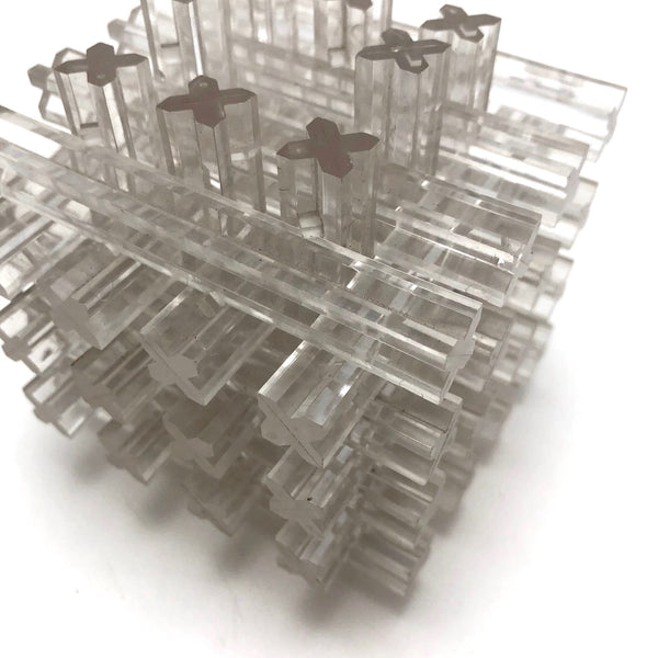 Not so easy to photograph, but really a terrific object, whether or not one ever attempts to take it apart and try to put it back together again. With a little feeling around, you can find two center pieces that have some give, and will pull all the way out to start to deconstruct it. I'm a little nervous to try, content to treat it as a great looking little modernist sculpture with a secret...but you may be braver than I!