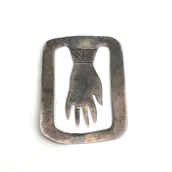 Perhaps meant as a wedding gift, the fabulous hand on this Mexican 925 silver bookmark (page clip) wears a wedding ring on one side--though I'm a bit partial to the bare handed reverse!) Works both ways, though, and though I haven't polished it, the silver is in very good shape. Really, what better gift to give to a reader who is also one's love?