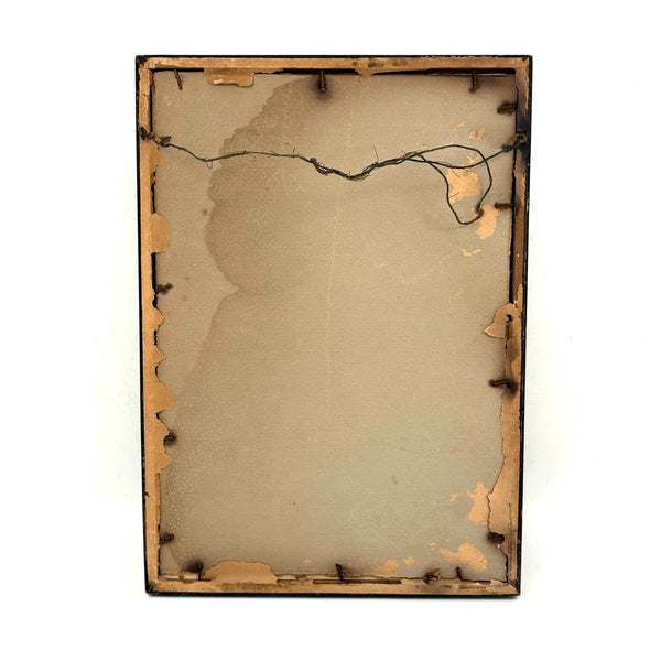 10 5/8" x 7 1/2" framed as found, under glass in a simple black stained wood frame with original cardboard backing and hanging wire. Good condition, with a little wear to the stain on the frame at the corners, no matter.