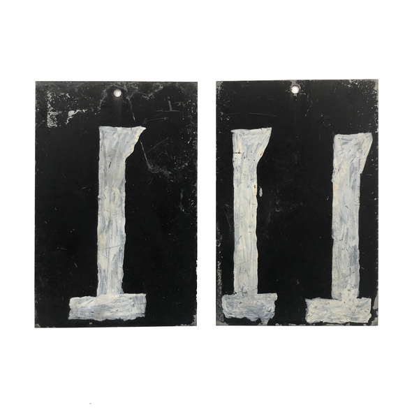 I'm not entirely sure what game these were made to score, but I'm pretty certain scorekeeping that was their original purpose--perhaps they tracked balls and strikes? In any case, I think the hand-painted numbers are about as good as they could be, and perfect in this very painterly white against black. And how great this 1 and 11--I assume meant to represent 1 and 2, though, as they flag in the opposite direction, perhaps I am wrong and they stand for something else entirely?! I think they're really beautiful.