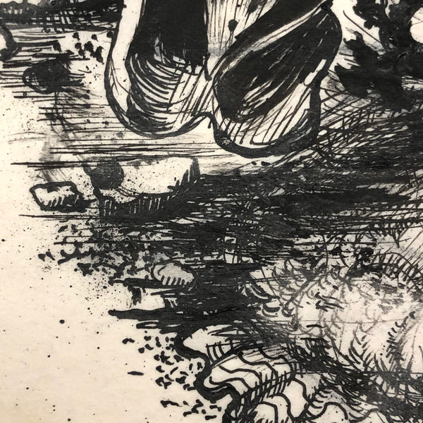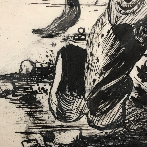 Palmer (1906-1987) was born in Des Moines, studied at the Art Students League in NYC under Thomas Hart Benton among others, and studied fresco painting at the Ecole des Beaux-Arts in France.--later painting a series of WPA funded murals in the U.S. Said to have made a sketch a day at least, examples of his far-ranging work (drawings, paintings, prints, illustrations including for several children's books) are held in the collections of the Whitney Museum, Cranbrook Academy, the National Gallery, the Metropolitan Museum, the White House, among many others, and his archive is housed at Hamilton College.