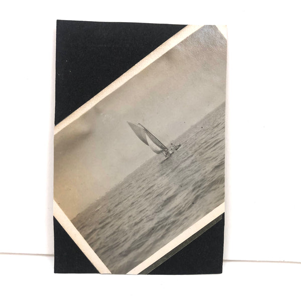 3 1/4" x 2 1/4", with a partial photo of a sail boat on the sea on reverse, from where it was cut from an album. A little age toning visible in sky and along right edge, who cares?