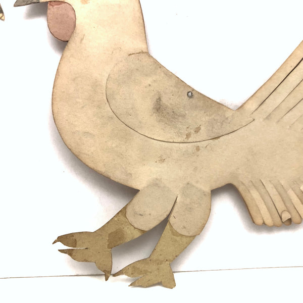 Wonderful Antique Cut Paper Rooster and Hen with Watercolor and Graphite Details