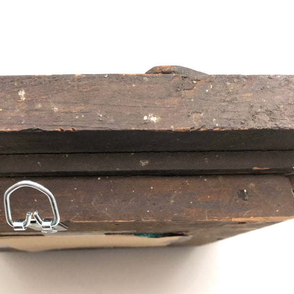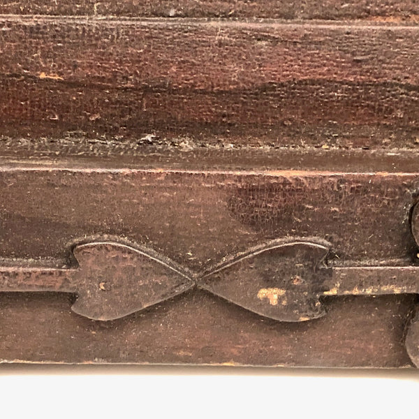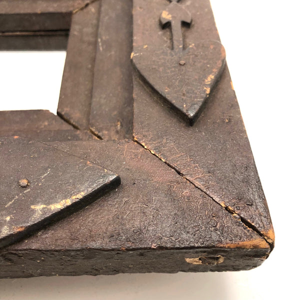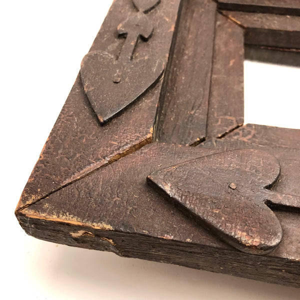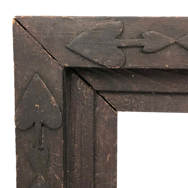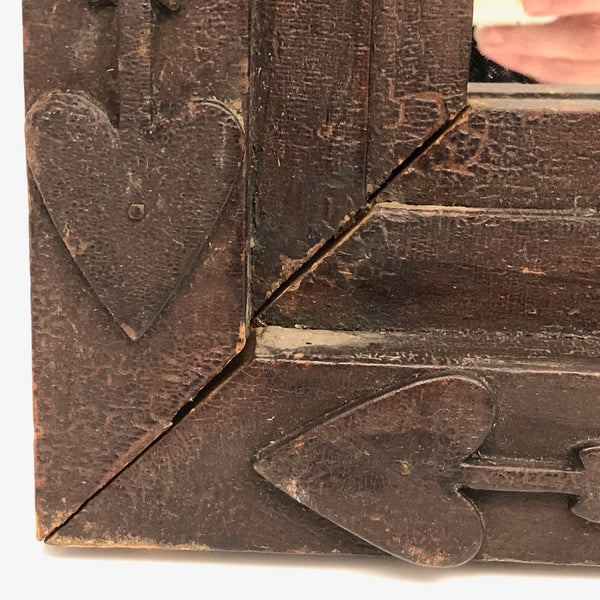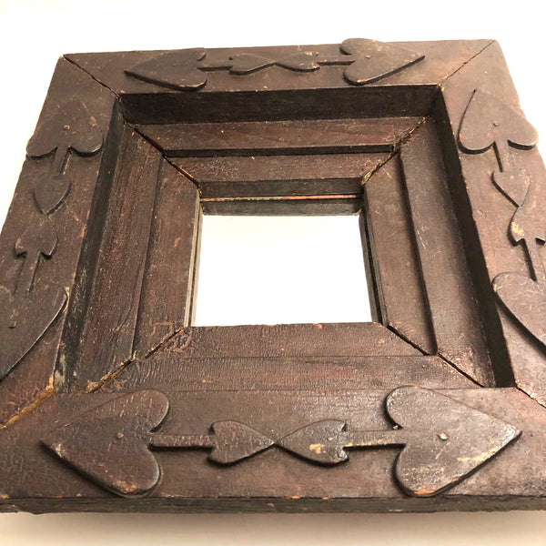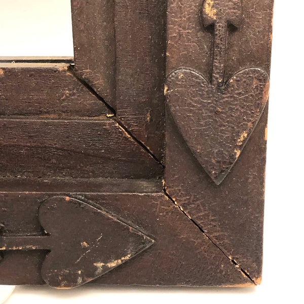 Another Rhinebeck find, which I believe came from Pennsylvania, and to my eye is pure perfection. I'm always searching for antique folk art pieces incorporating hearts (who can ever have enough?) and all the better hearts that double as arrows, pointing in every direction and meeting with more hearts in the middle. Plus a marvelous old crusty surface. Three layers deep, it was built to last, sound and sturdy and substantial. The mirror itself is newer-- perfect for clearly reflecting the face of one's beloved or oneself!--though also easily removed should one wish to use it as a picture frame. Terrific.