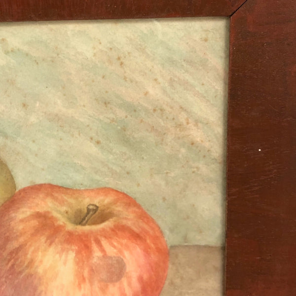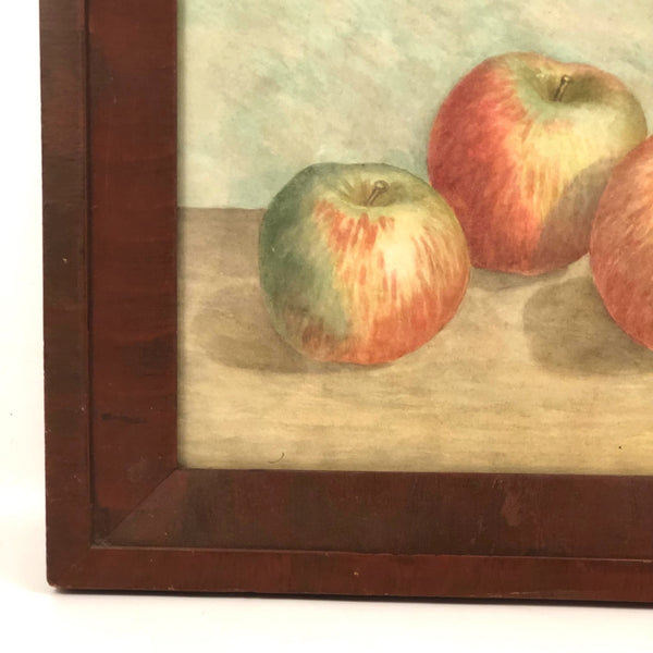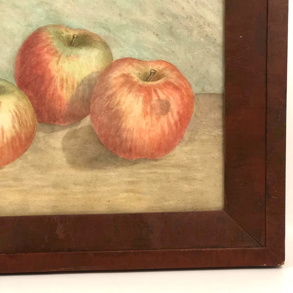 I've got a special weakness for paintings of apples, especially ones that feel as much like portraits as still lives, and think this antique watercolor is really a lovely one. Crisp and soft and bright, just like an apple, and I love how the artist so carefully positioned the apples such that all of the stems would point exactly the same way. Late 19th/early 20th c. I believe, and in a terrific antique dark red painted frame.