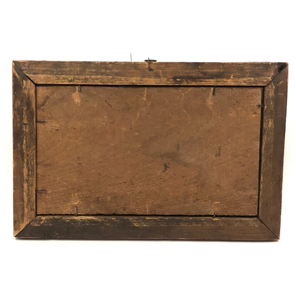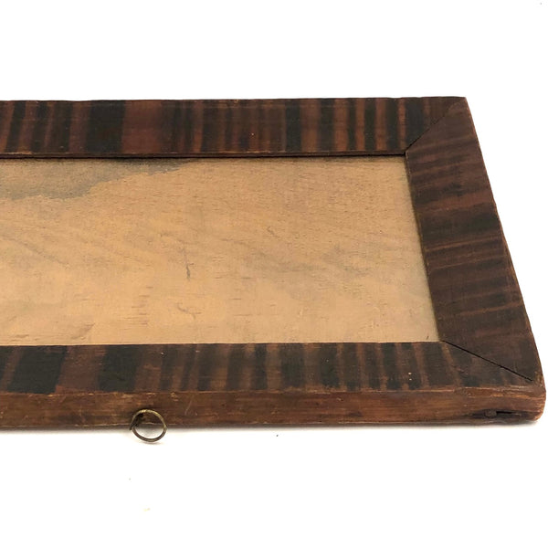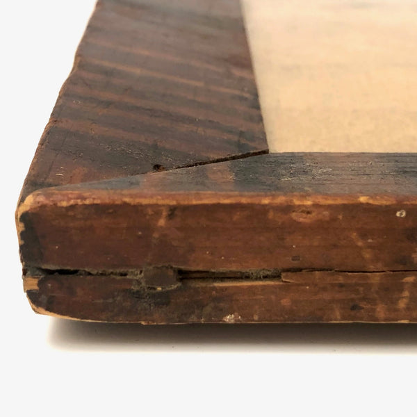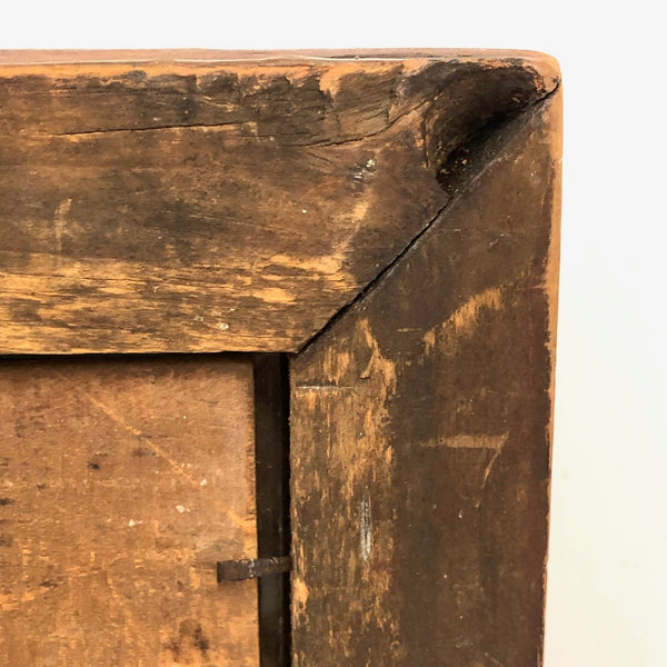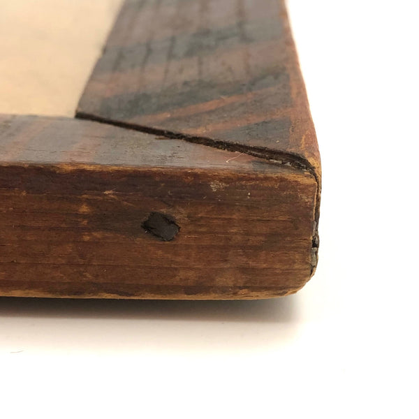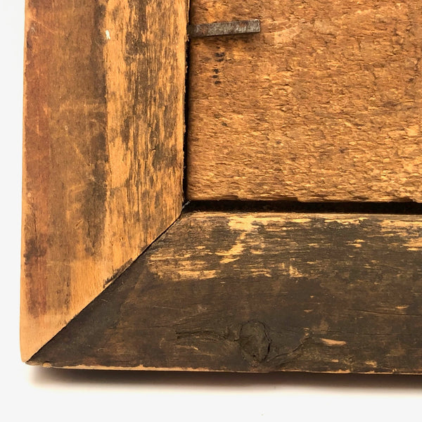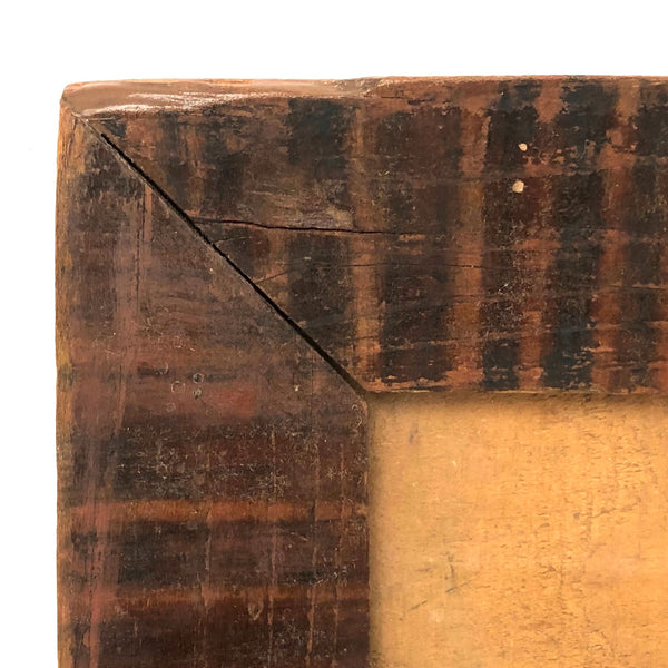 I pretty much never come across such a wonderful, early frame as this, and as I don't currently have something quite worthy of it in hand, I'm offering it up to be used for the precisely perfect thing --which I'd say would be a Pennsylvania fraktur watercolor! I know from the seller it came from Berks County, PA, and based on a fair bit of comparison with early grain painted early PA frames out there, I believe it dates to the 1830s-40s. Beautifully aged, with a marvelous softness but also boldness to the paint, and the most wonderful presence. Original glass, perfectly fitting wood backing, and what I believe is the original hanging loop at top. Hand-forged iron nails at the corner and early nails holding the backing, too. Terrific.