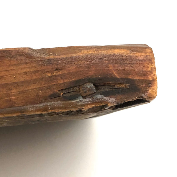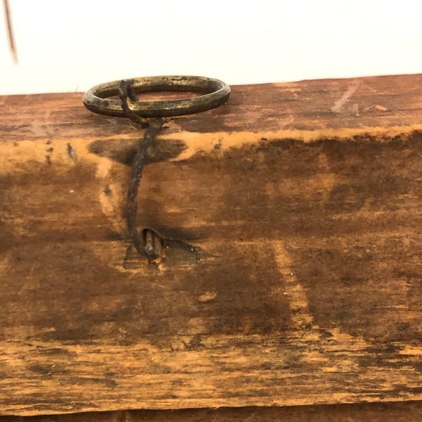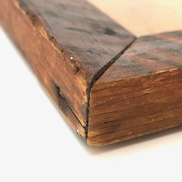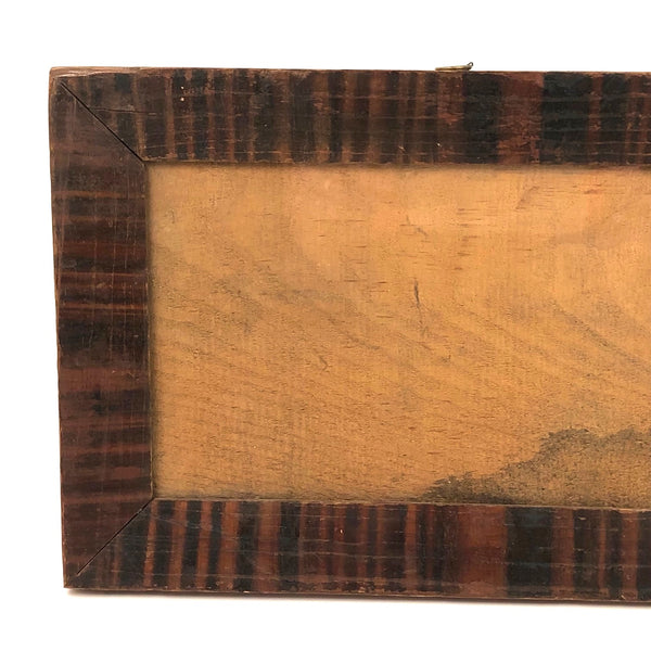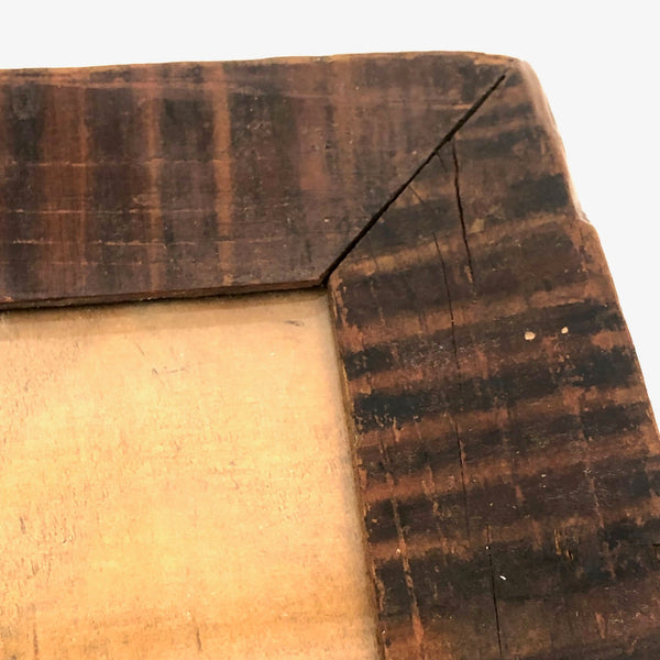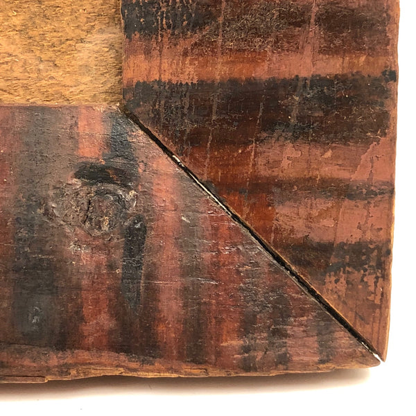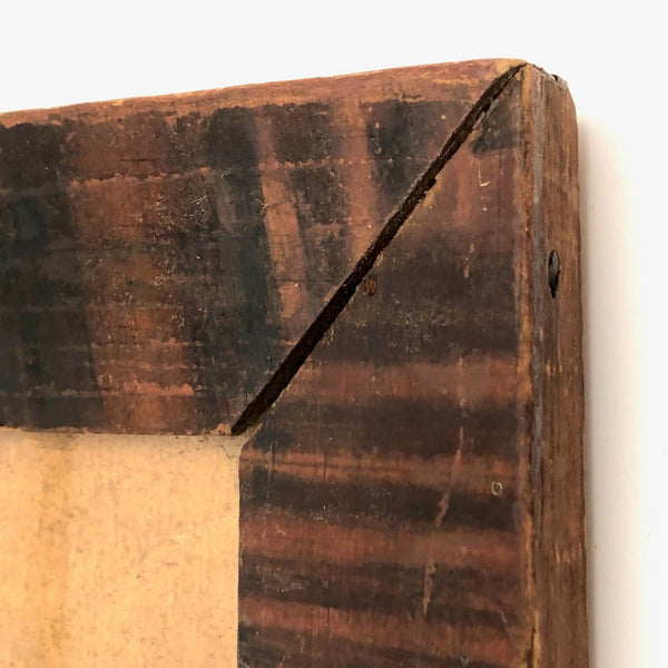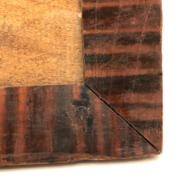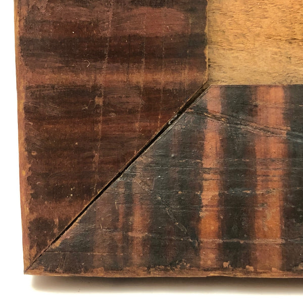 12 3/8 x 8 1/8; opening 5 5/8 x 9 1/2. Very good antique condition, with what looks like a small, old loss along the top left corner edge, now smooth, and a bit of old splitting around a couple of the nails on the sides. Sturdy and sound and beautiful.