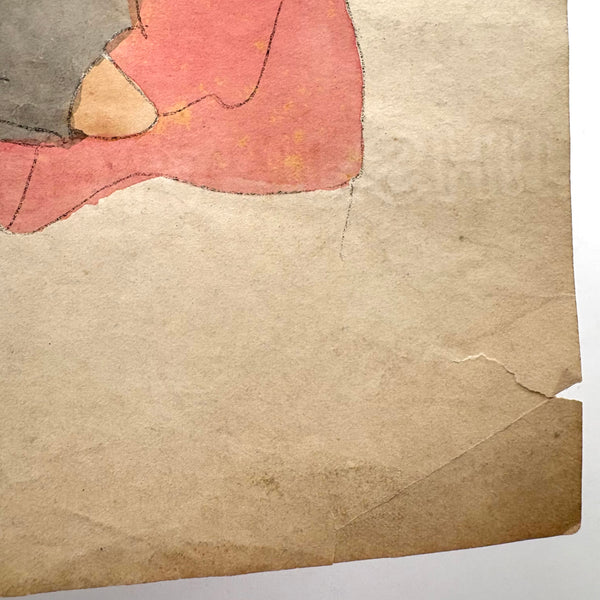 8 3/4" x 5 1/8". Watercolor on bond paper. Some creases and a small tear to lower right, as documented.
