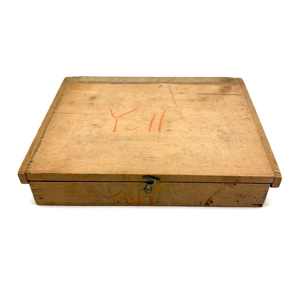 Box measures 6 5/8" x 5 1/4" x 1 1/8". Good and sturdy condition, with latch closing it tight.