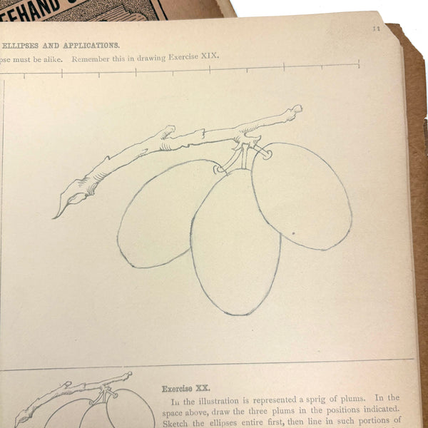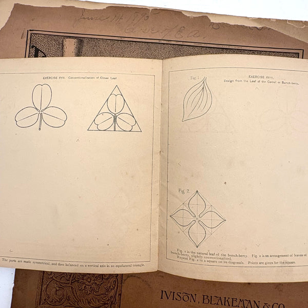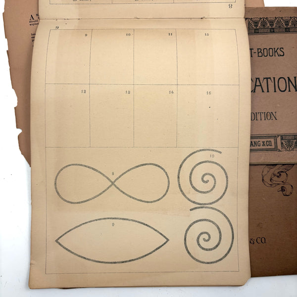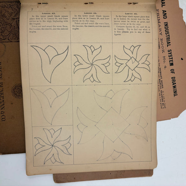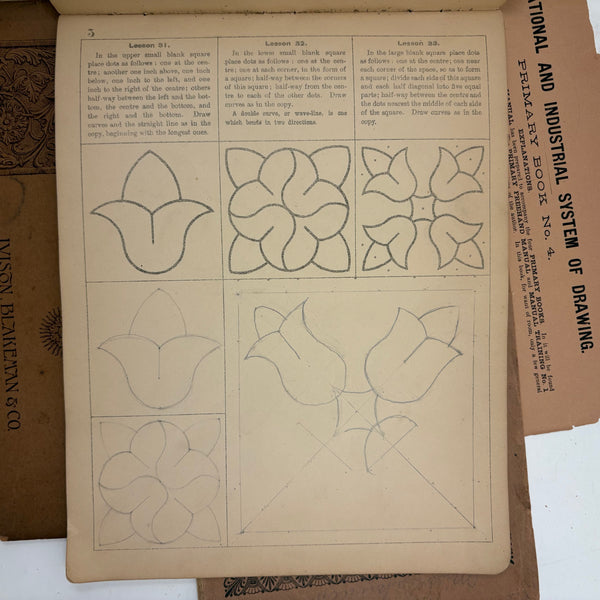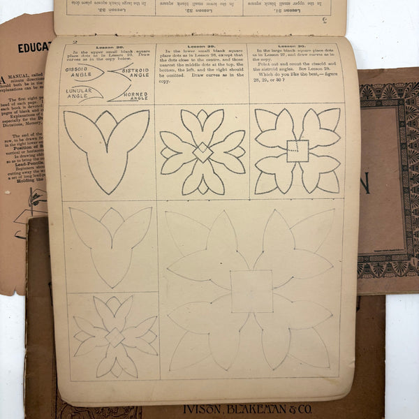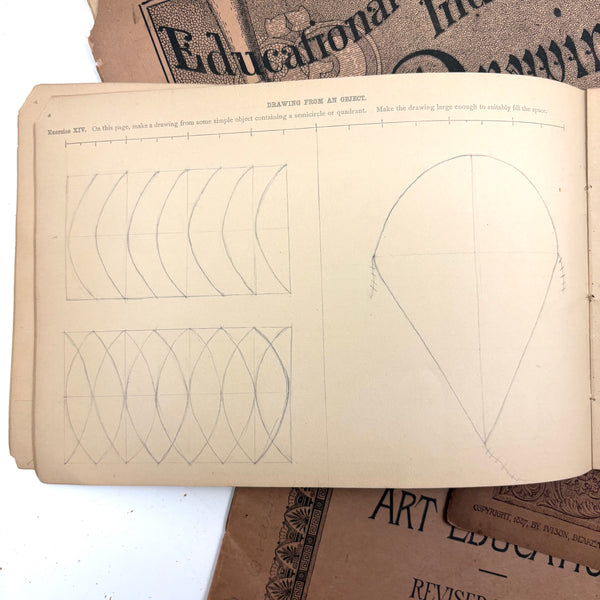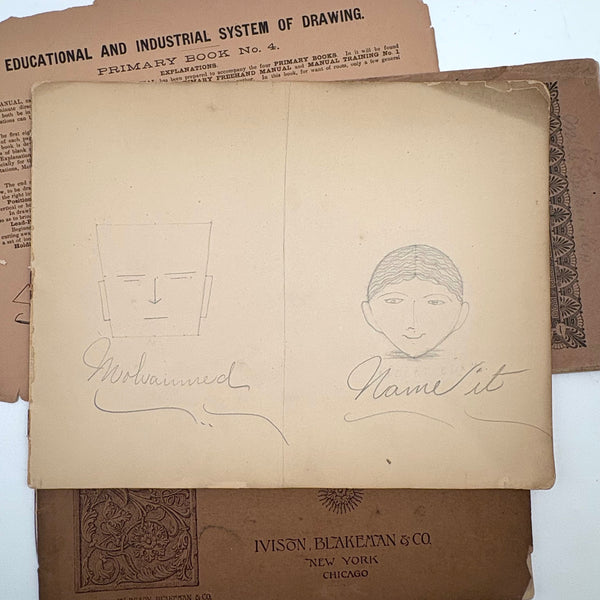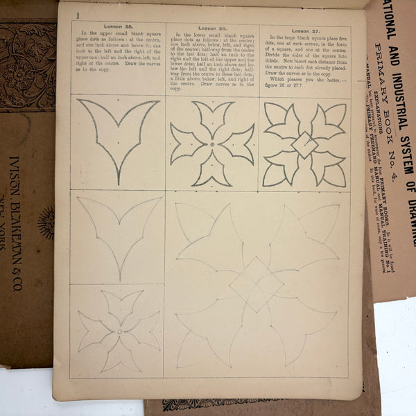 The covers on these are pretty rough--detached in the case of two of them--but I've got a weakness for these old drawing instruction books, especially the more minimal ones as these are (focused on simple shapes, designs and patterns) and there are a couple curious drawings in here all their own (faces, skeletons.) I have not done a comprehensive job photographing, but photos here give a good sense--a few favorites pages first, then a sampling of a few pages from each. Set of three as pictured.