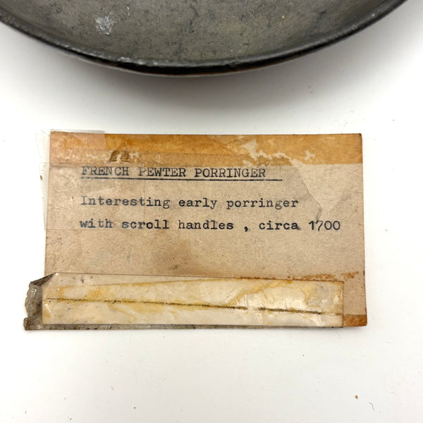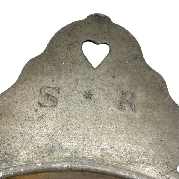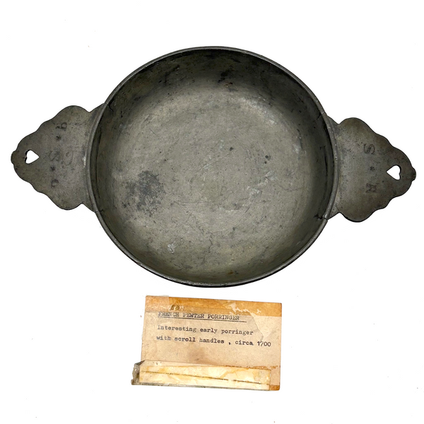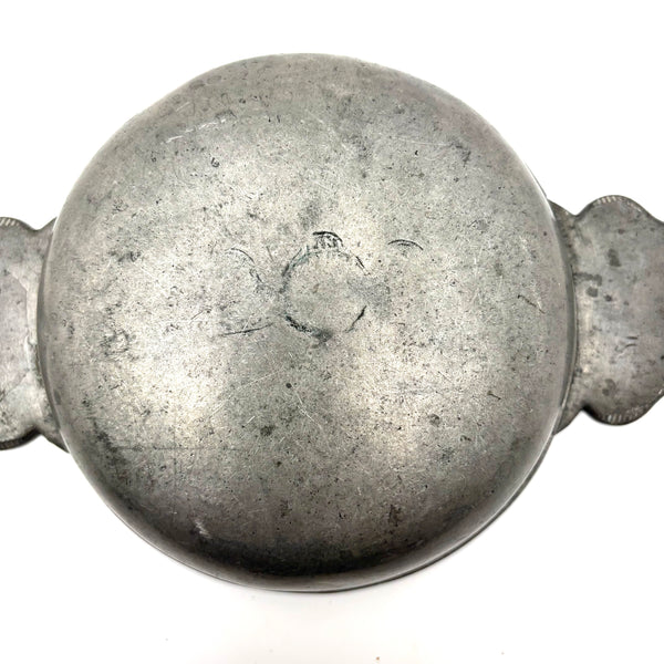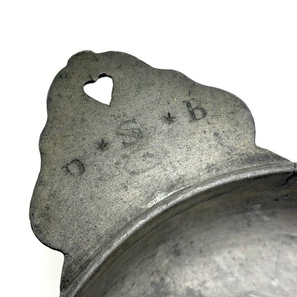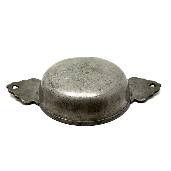 C. 1700 French Pewter Porringer with Heart Handles and Monograms