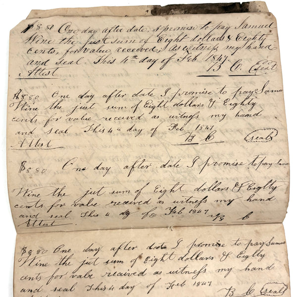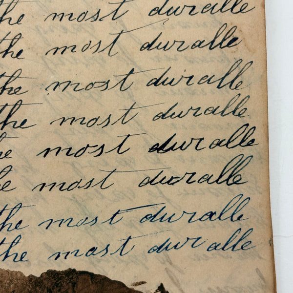 7 3/8" x 6 3/8", 16 pages, all full (32 pp.) Good condition, no covers, string binding, holding all pages together. Some ink stains, original to it I believe, and general wear. Ink strong and readable throughout