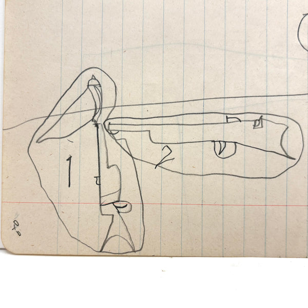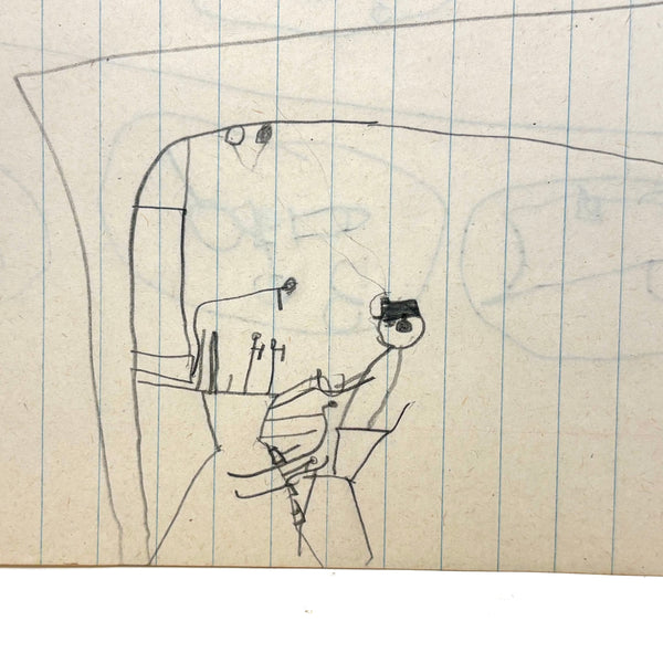 9 5/8" x 7 5/8", graphite on lined paper. Good condition.