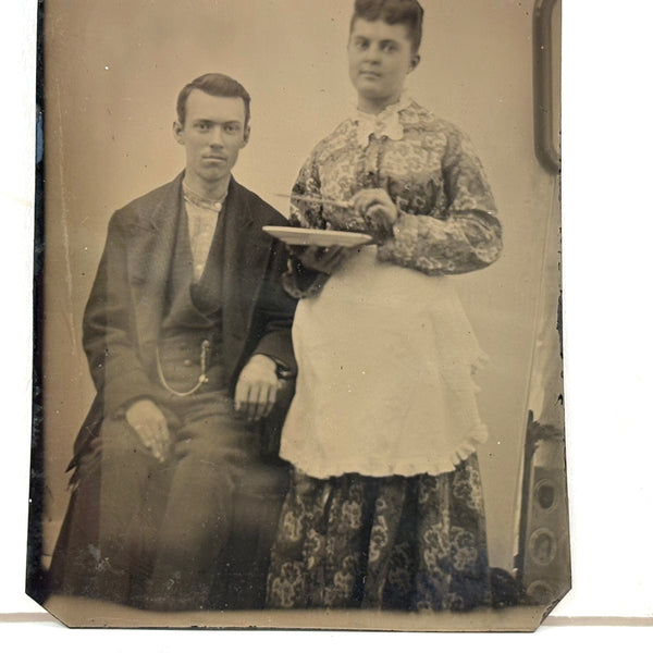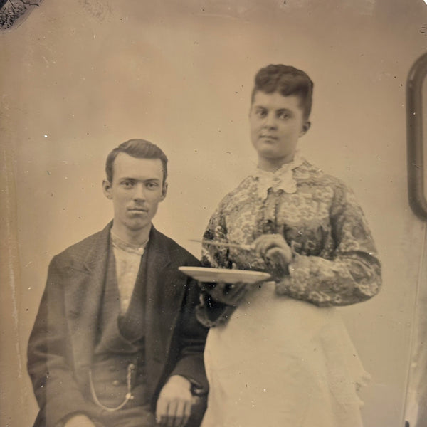 Beatific Wife Subtly Pointing Knife at Husband, Wonderfully Subversive Feeling Antique Sixth Plate Tintype