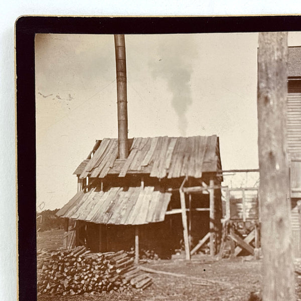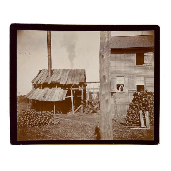 I must say that I was first struck by them formally--the composition of the first one, with wooden pole a perfect vertical in the foreground echoed by the pipe rising tall from the shed and trail of smoke rising from behind it; all those piles of logs, the very vernacular construction of the structures, etc; and the almost eerie light and shadows of the second. As documents of rural South Carolina in the late 19th/early 20th century, closely following the passage of Jim Crow laws in the 1880s that were especially severe there, they are also very much charged with the history and legacy of American slavery.