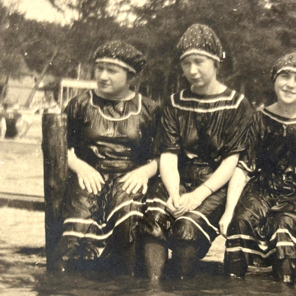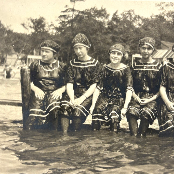 Great faces, great expressions, great swim costumes, and especially great swim caps! I just love these girls, and also how it looks like the platform they are squeezed together onto, is about to sink under their weight!