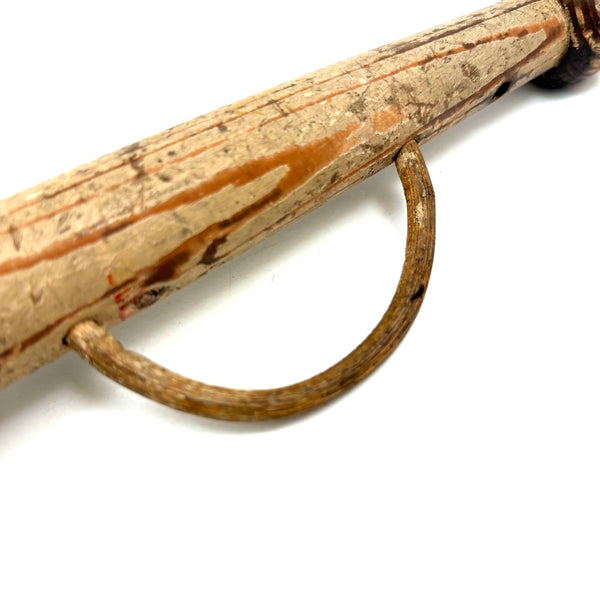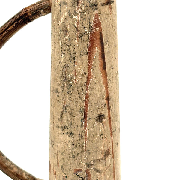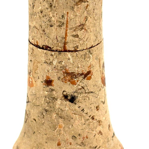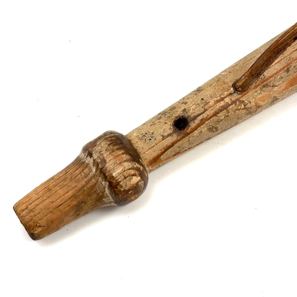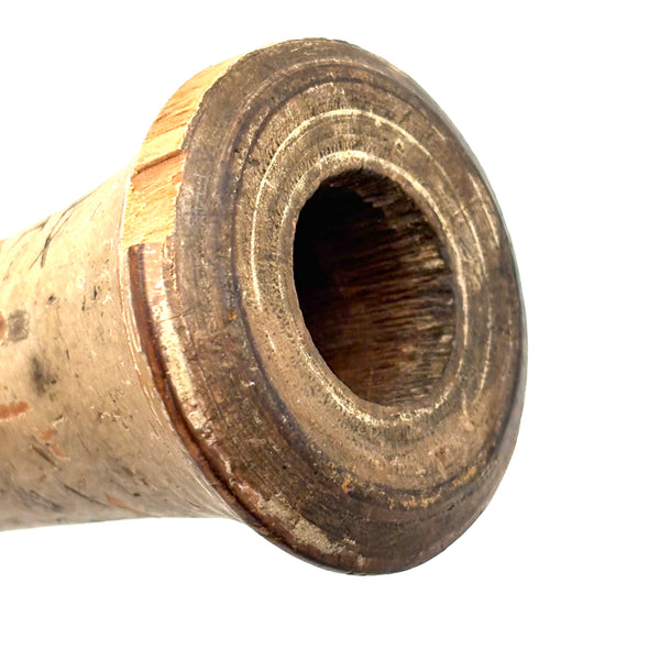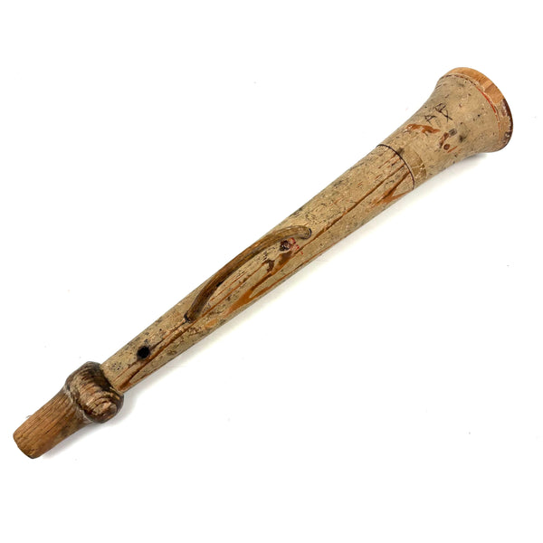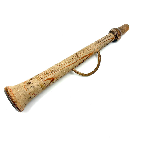 Happy New Year! This antique wooden horn is a fun one to play, trumpeting very loudly, rather like a kazoo, and with a finger hole too for wavering the sound. Which was a happy discovery; I purchased it, sound unheard, just because I found it quite beautiful. Turned/carved from one piece of wood, in original creamy white paint, and with a great bentwood (bent reed?) handle that enhances a sense of specialness. A sweet thing.