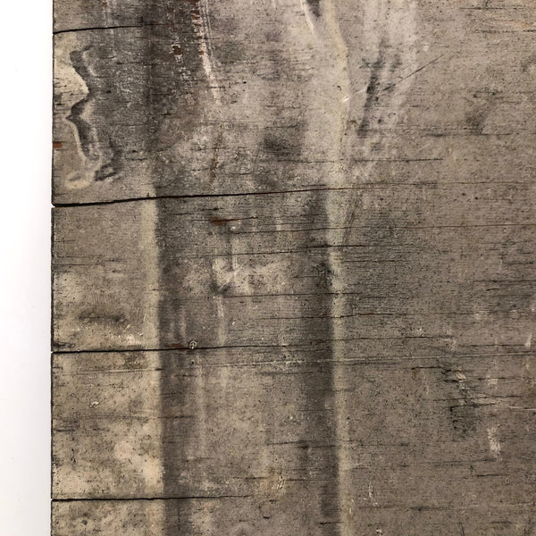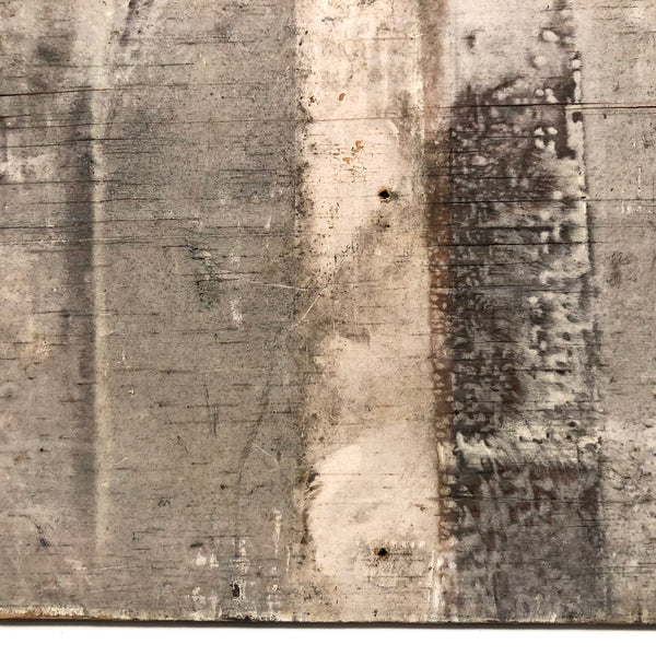 11 3/4" x 8 3/4" x 7/8". Paint loss, scrapes, rings and a little cracking here and there, all to the good I think. The surface has worn soft and smooth, and the surface of the back is pretty gorgeous too. There are three old screw holes down the center.