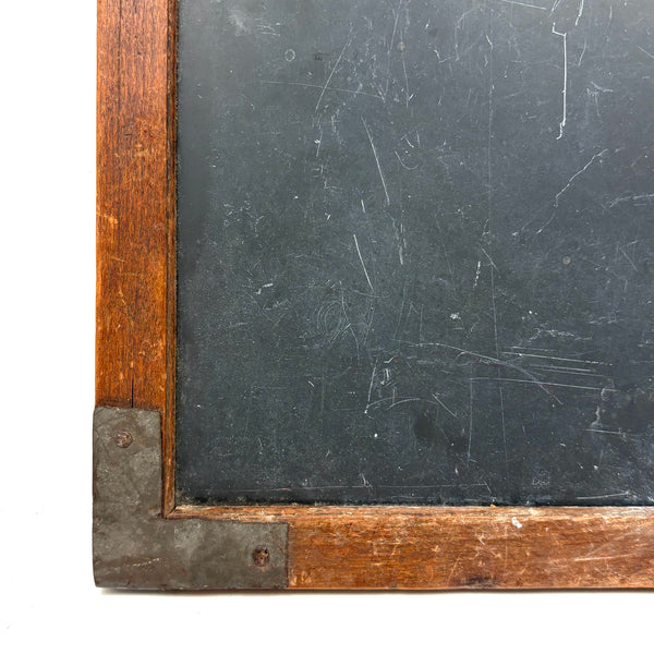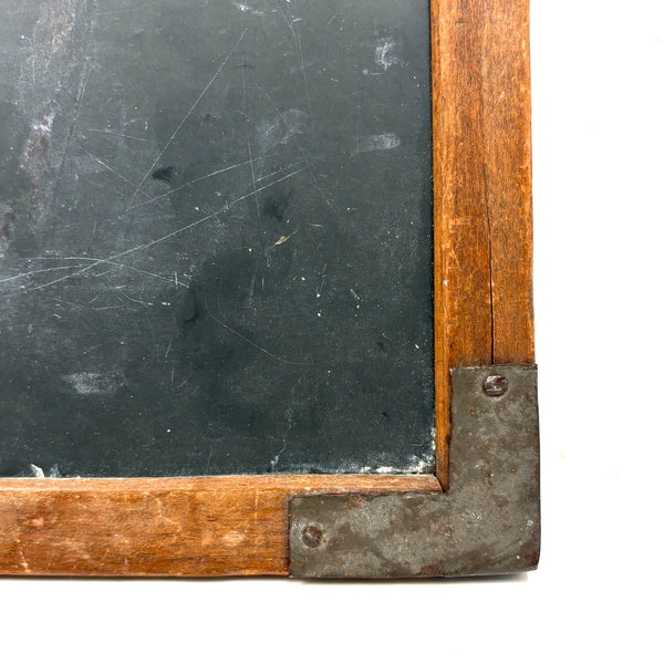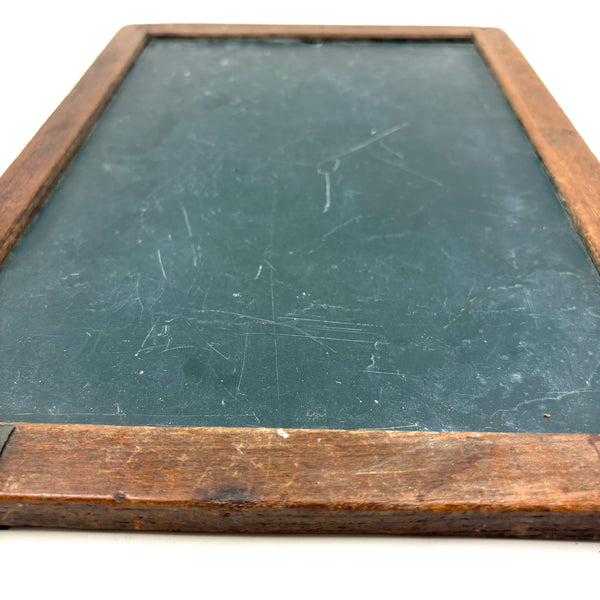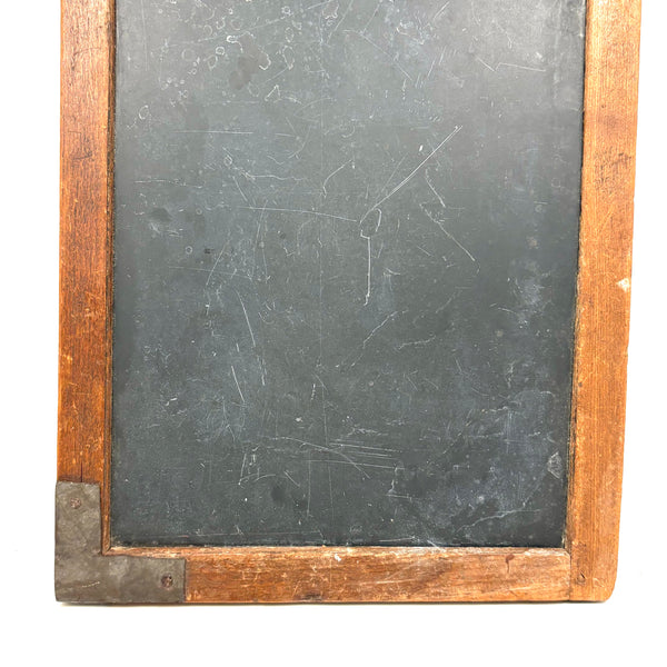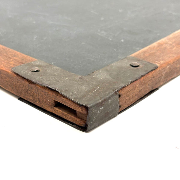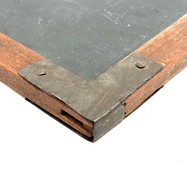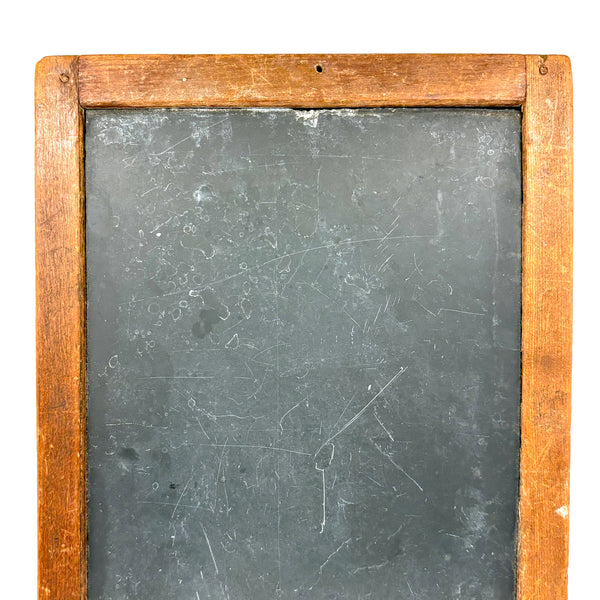 14" t x 9 3/4" w x 1/2", very good antique condition, sturdy and sound, with lots of use left in it should one want to put some chalk to it. With a small hole top center one could thread to hang.