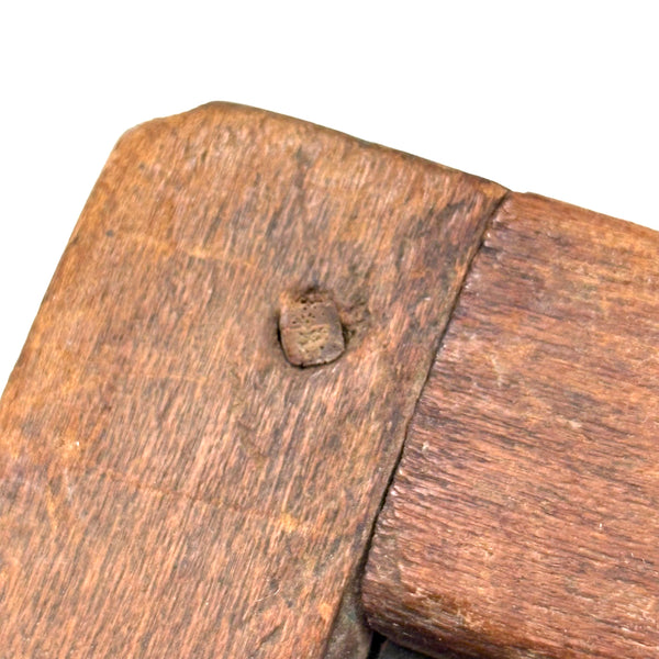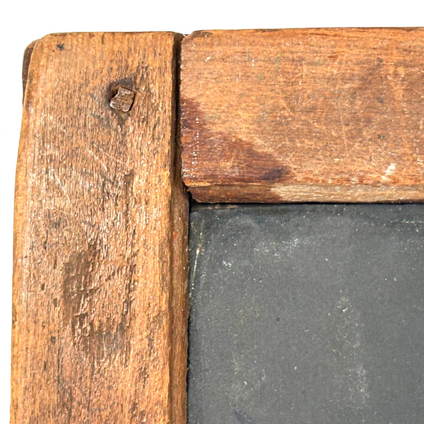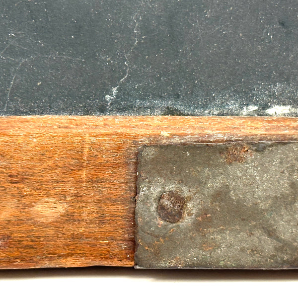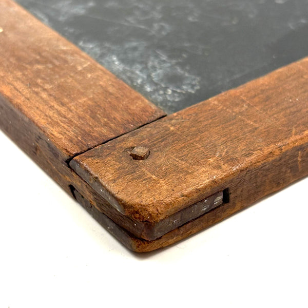 A beauty of an early handmade slate, earlier 19th c. than later I believe, with carved wooden pegs holding the jointed corners and one beautifully executed wrapped tin corner mend. I do believe antique school slates are a most wonderful thing to collect, each having lived quite a life, with old repairs like this enabling their endurance and making them special. How nice to create a whole wall of beautiful examples.