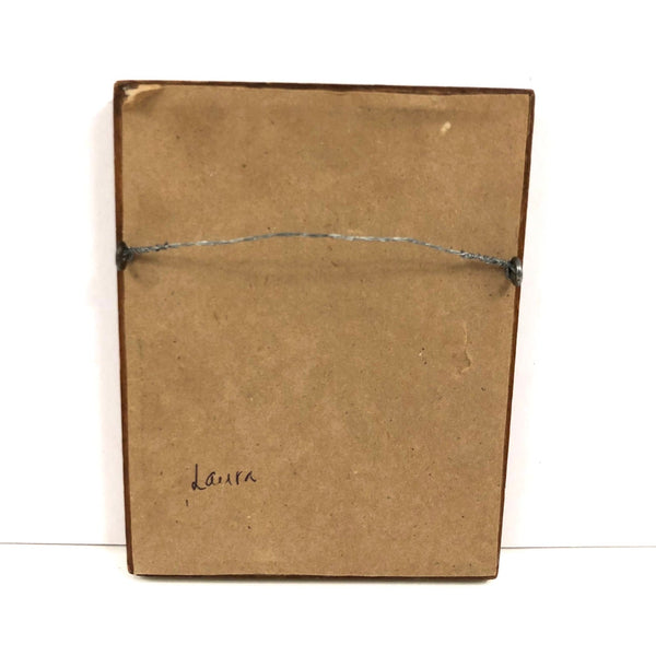 4 3/4" x 3 3/4" framed, as found, with the name Laura written on the back. Very good condition.