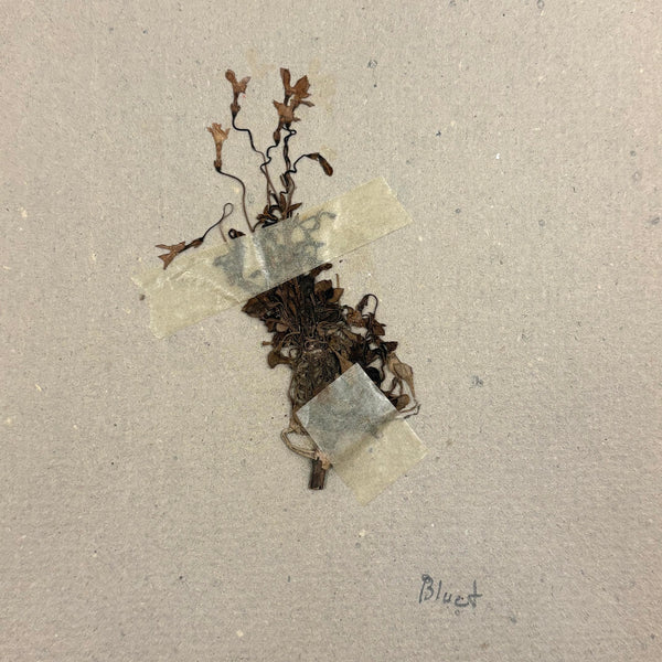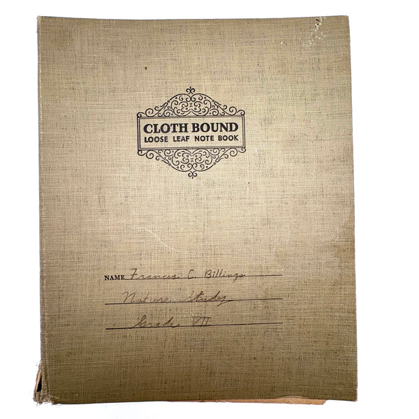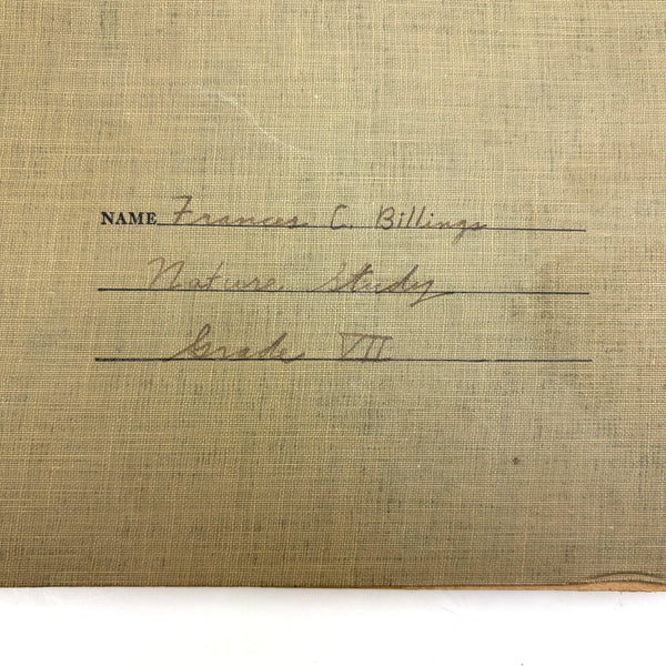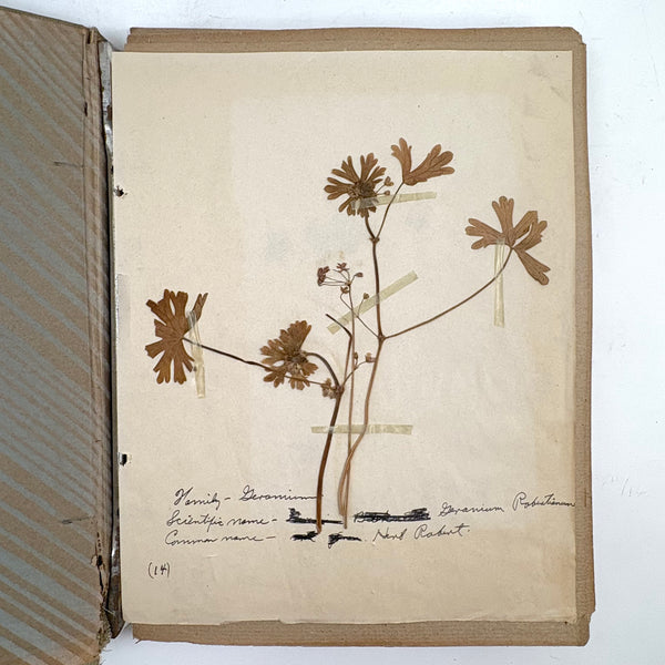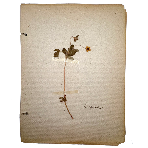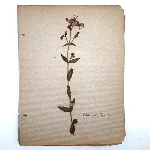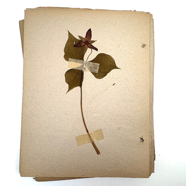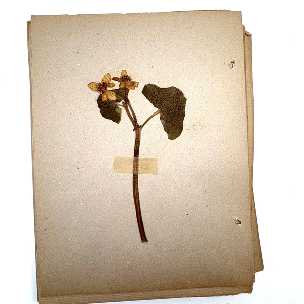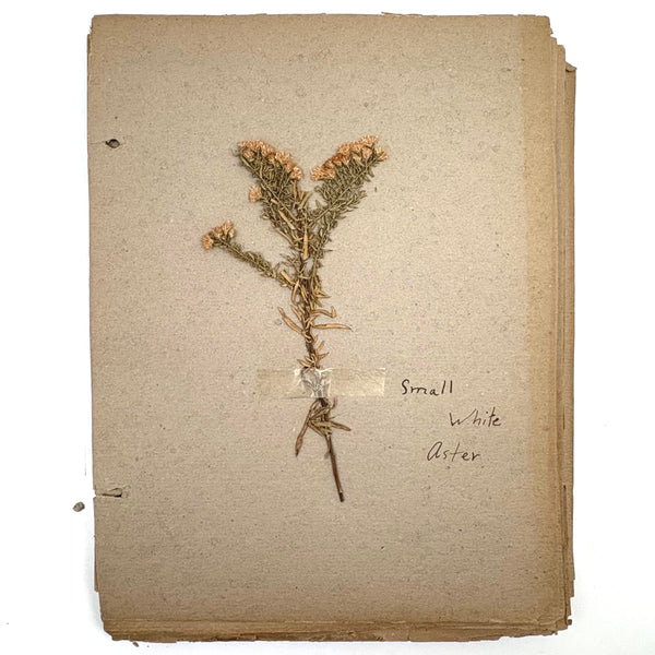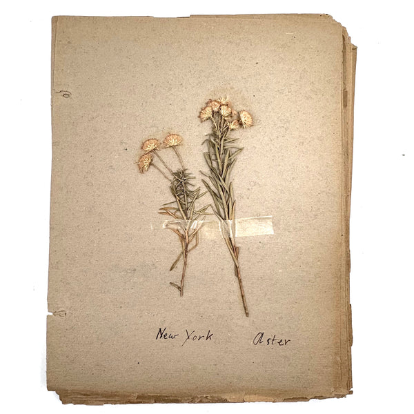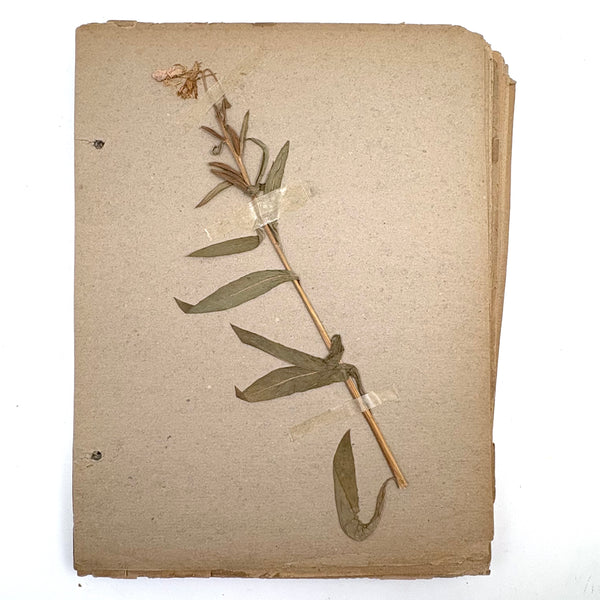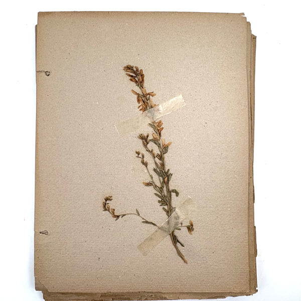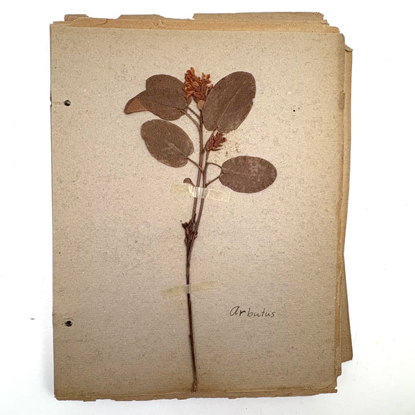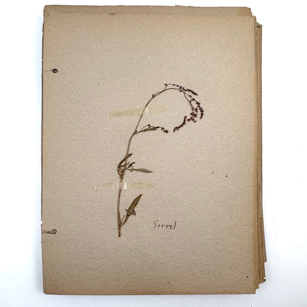 A very sweet group of 24 "nature studies," housed in a cloth covered three ring binder--though those binder rings pull at the holes in the somewhat brittle paper, making them not so easy to flip through so I'd keep them loose inside, or get some of these into frames. Sometimes one loves love herbarium for their exquisiteness, and sometimes for the humble earnestness--this is more the latter, but really very lovely too. I love the paper they were done on, and the combination of the specimens and the young handwriting on many of them, and the pressed leaves and flowers and stems are very well preserved. Feels very Arts and Crafts era to me.