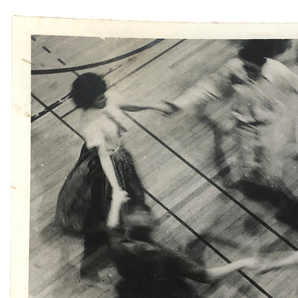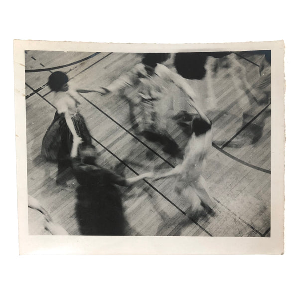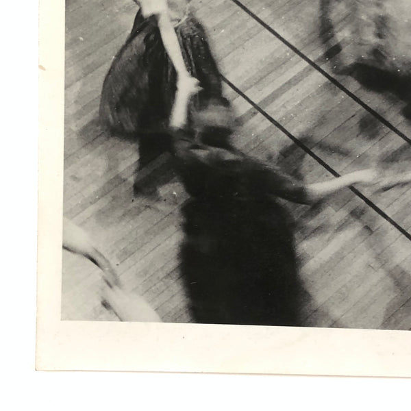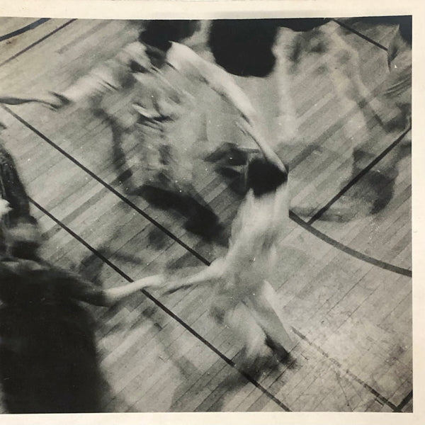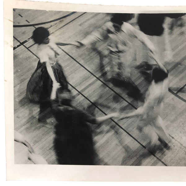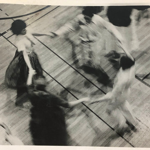 School dance, 1950s or so, bodies in motion, and their shadows too, drawing patterns and blurs against the lines of the gym floor. Perfect.