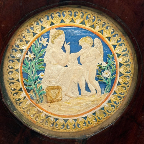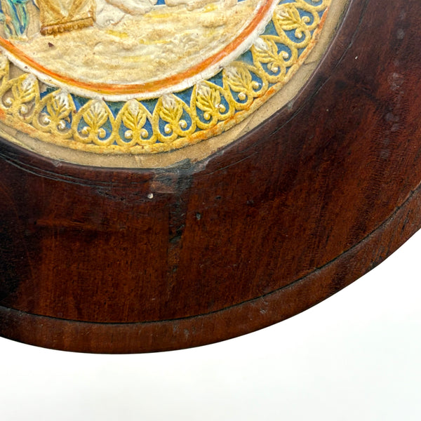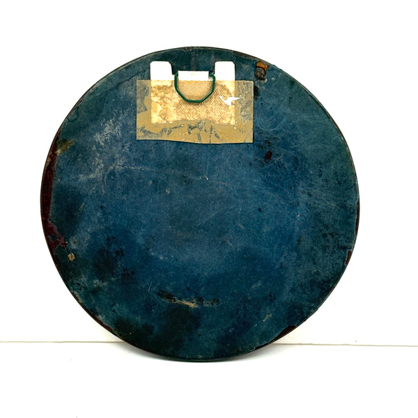 As found, in original frame, under glass: 5 1/2" d. Sight: 3". One small loss to the interior edge of frame, lower right, minor. Original wire hook for hanging on reverse.