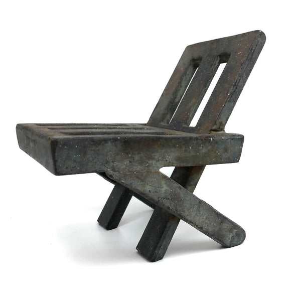 I don't know much of anything about this chair and how it came to be, but I love it. It feels to me more like a model created by a design-build firm than anything else, or maybe product of an industrial design class, but I'm really not sure. Definitely it was cast in two pieces, welded together where they meet. In any case, while not an especially hospitable looking chair, a pretty great looking object.