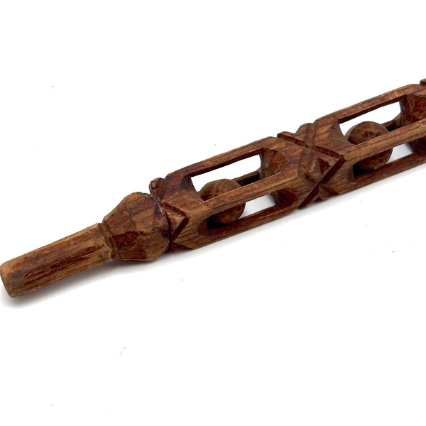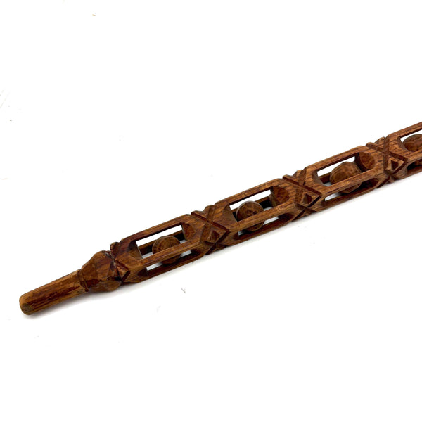 Another week, another whimsy, not because good old ones are easy to find, but because you always grab them fast when I do, and so I look hard for them. Some long and tall whimsies (and some chains, too) were carved from broom handles, as I'm pretty certain was the case here (this one precisely 24 inches in length )--which I really like the idea of, very much a make do sort of carving, the utilitarian mundane transformed, and of course a real whittler will whittle on whatever is around! And here I might wonder if this one was carved as a model of sorts in advance of a full scale walking stick!