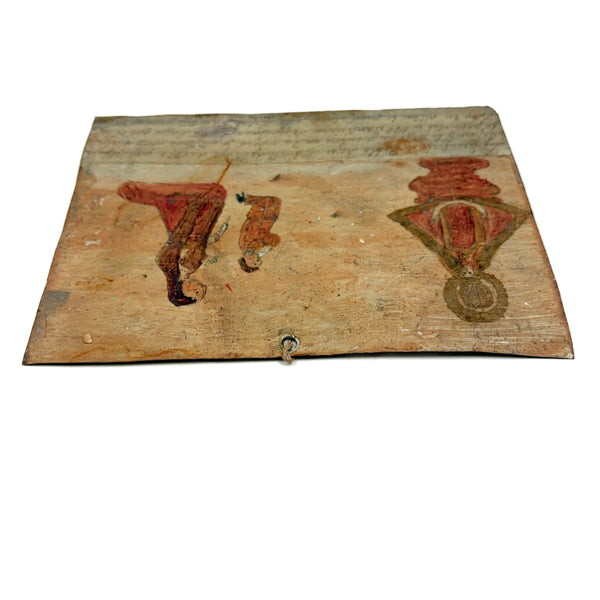 7 x 5 1/8 and in very good antique condition, perfectly aged. With an old string still attached for hanging.