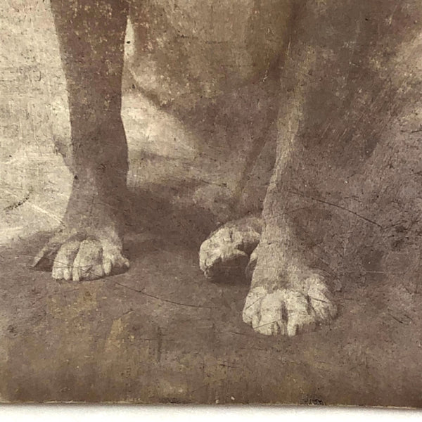 A pretty terrific portrait I think, with our canine subject captured at just the right instant, staring straight ahead and looking a perfect mix of soulful and formidable. Happily, the studding on his or her leather collar is just visible as it curves around the neck, while the leather end hangs at a jaunty angle right in front.