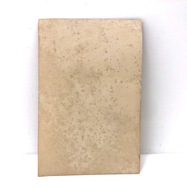 3 3/8" x 2 1/4". Printed on thin paper, which shows a tear along the left edge and a little dark staining toward the upper left corner. Color is close to a sepia tone but not completely, more of a gray-brown.